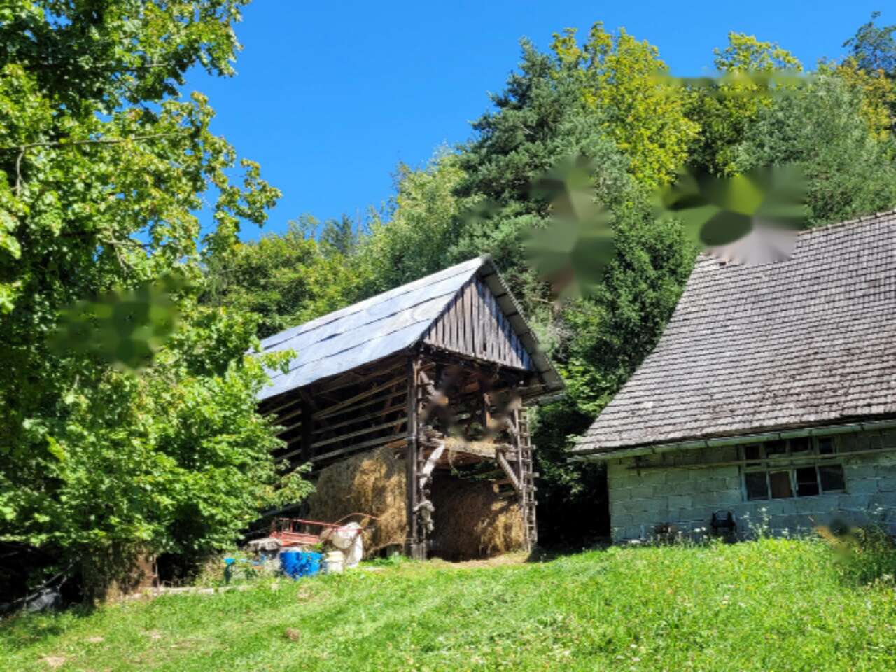 Здесь расположен старинный дом, требующий основательного ремонта, а также хозяйственные постройки с амбаром. Весь участок отличается разнообразной топографией и охватывает пространства от лугов и плодовых насаждений до тенистого леса, обеспечивая ощущения уединения и свободы.