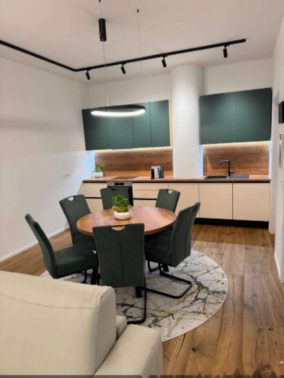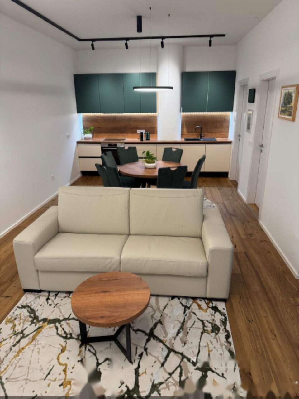 Квартира отличается продуманной планировкой и полной комплектацией, включающей удобное напольное отопление и систему обогрева с тепловым насосом, которая гарантирует комфорт в любое время года. Интерьер соответствует современным стандартам качества, что делает его идеальным выбором для семей и пар, стремящихся найти уютное жильё в благоустроенном уголке города.
