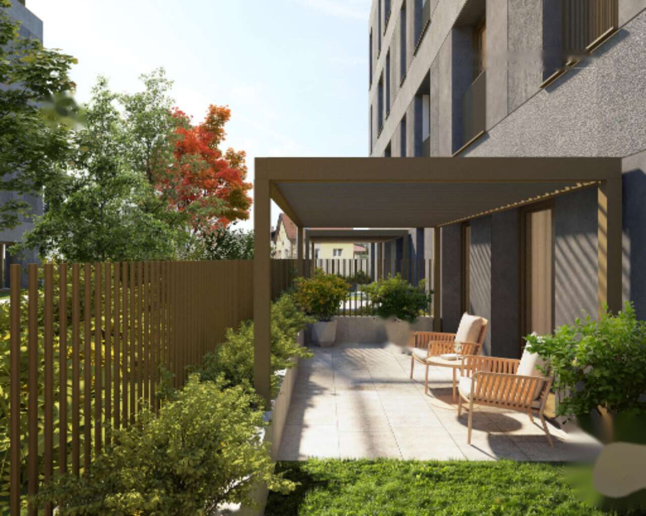 Комплекс предоставляет проживающим доступ к ухоженной зелёной террасе и предлагает обширные парковочные возможности. Жилье оснащено домофоном, быстрым оптическим интернетом, отоплением полов и системой кондиционирования воздуха. Поблизости расположены детские учреждения, зоны для отдыха, автобусные остановки и удобный выезд на автомагистраль.