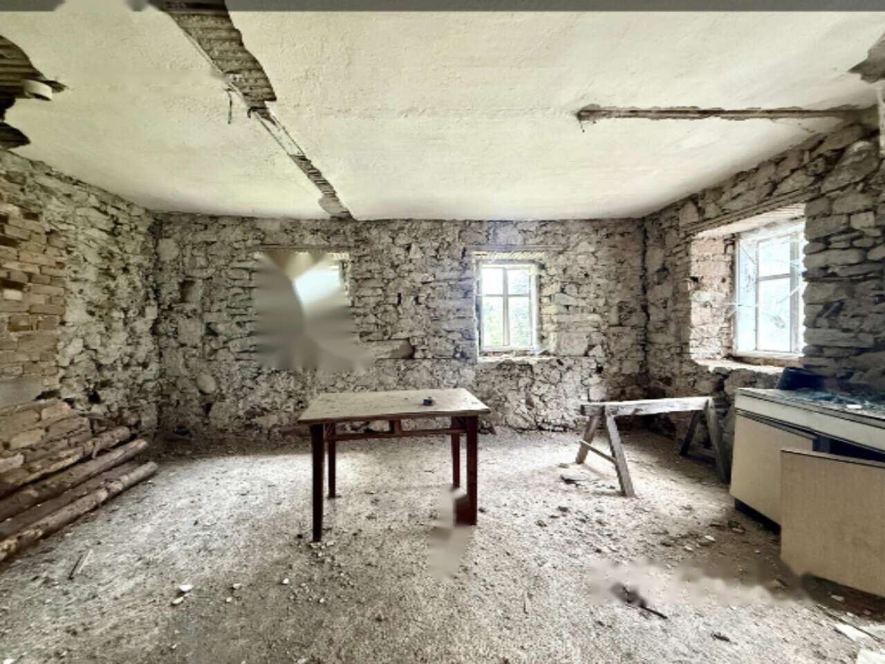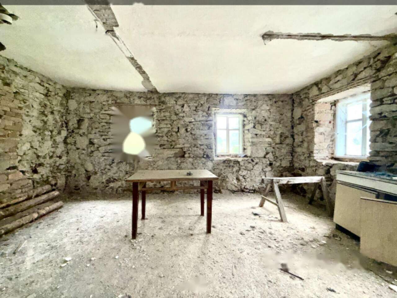 В дополнение к дому имеется хозяйственное строение площадью 97,2 м², которое возможно использовать как склад или преобразовать для других целей. Земля, окружающая дом и постройку, включает в себя поле и лес, предоставляя идеальные условия для создания сада, небольшой фермы или туристического объекта.