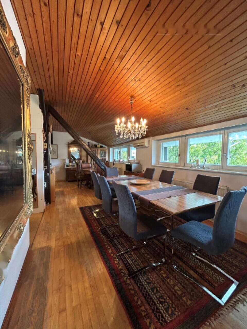 Интерьеры тщательно продуманы: просторная гостиная, совмещённая с обеденной зоной, seamlessly переходит в современную кухню. Комфорта добавляет гардеробная и просторная ванная комната с окном. Несмотря на отсутствие лифта, большое количество мансардных окон приносит в дом обильный дневной свет.
