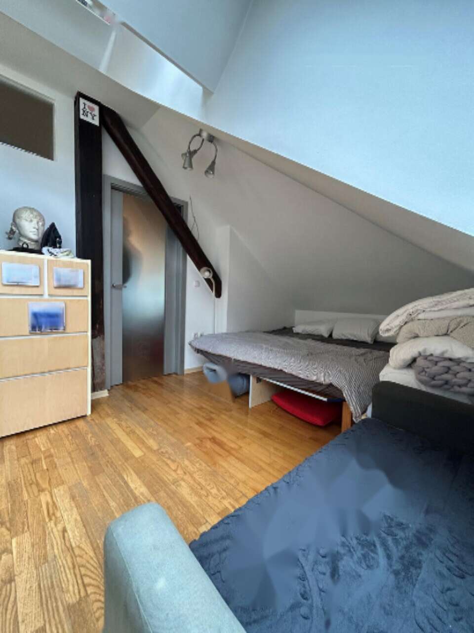Эта квартира гармонично объединяет в себе шарм винтажного строения с актуальными удобствами и просторными комнатами. В ней три спальни: одна оборудована спальным уголком на галерее, другая - мансардными окнами, а третья - выполнена в классическом стиле. Есть возможность обустроить террасу, откуда открывается великолепный вид на Люблянский замок.