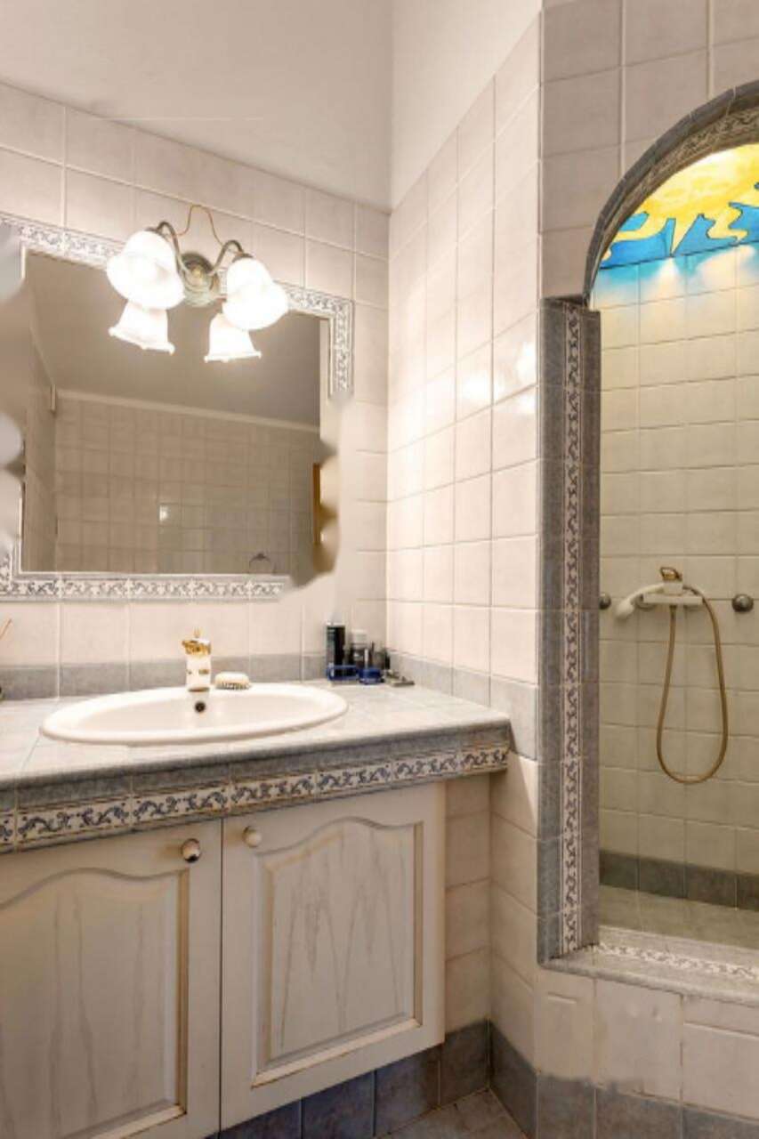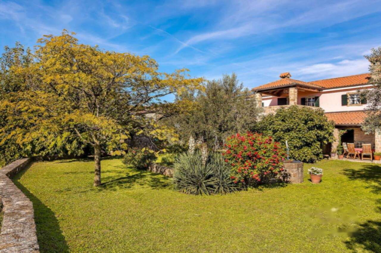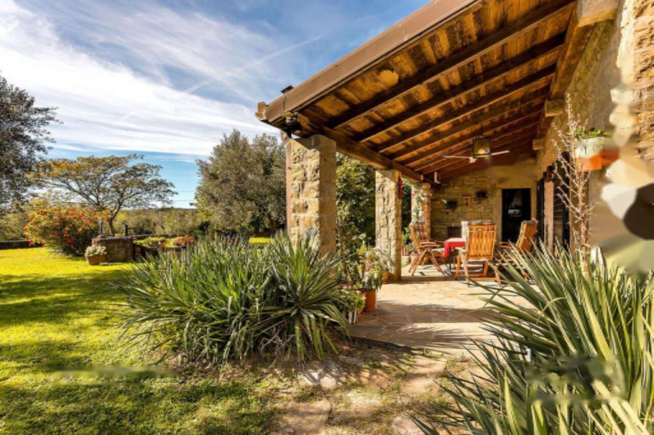 Ухоженный сад окружает дом, радуя декоративными цветами, кустарниками, а также оливковыми и фруктовыми деревьями. Летняя кухня с прочным каменным столом, оснащенная газовыми грилями и печью, создает идеальные условия для ужинов на свежем воздухе. На территории также имеется бассейн, обновленный в 2021 году, чистящийся с помощью робота, а заботу о газоне берет на себя робот Husqvarna. Дом снабжен рисжанским водопроводом, солнечными коллекторами и 50 м³ цистерной для сбора дождевой воды. Отопление работает на жидком топливе, с радиаторами и полами с подогревом, есть возможность удаленного запуска системы.