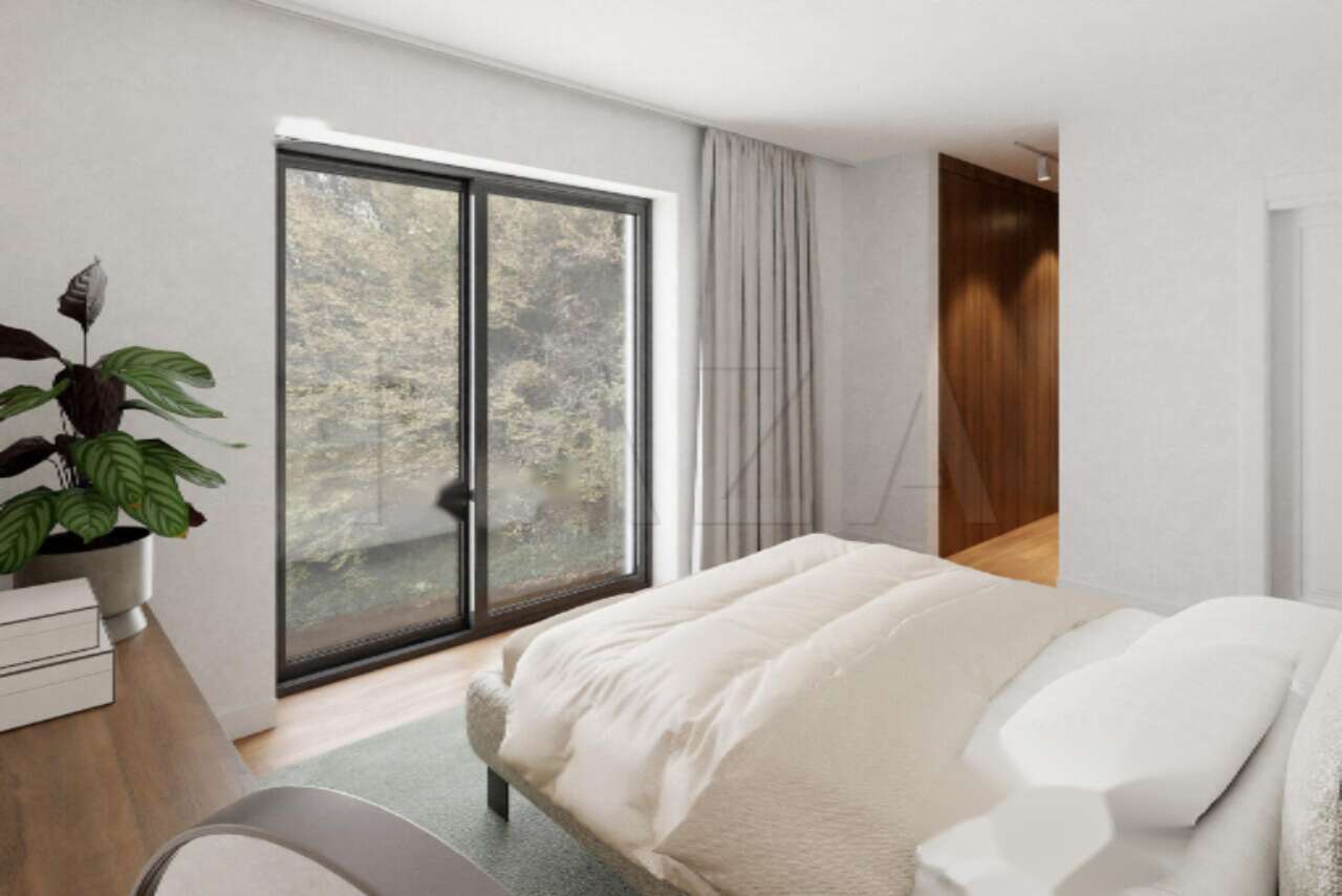 Проект предполагает оснащение дома высококачественными ПВХ окнами DECEUNINCK PROFIL ELEGANTE с тройным стеклопакетом и дверями с антивандальной защитой. Отопление и горячая вода будут обеспечены через тепловой насос. Выбор финальных отделочных материалов, включая напольные покрытия, плитку и санитарные изделия, возможен по желанию покупателя за дополнительную плату.