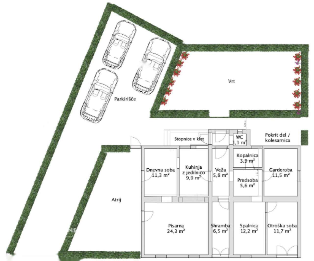 - 3 приватных парковочных места