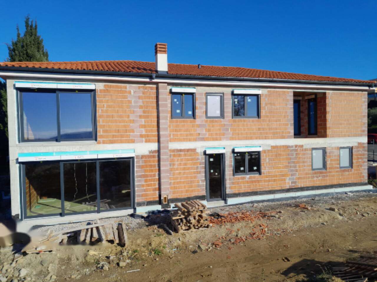 В Сподние Шкофие, на участке размером 2 400 квадратных метров, примостился новый одноэтажный дом, который будет достроен в 2025 году. Из общей площади дома в 396 квадратных метров, 45% отведено под жилое пространство, а остальная часть, составляющая 55%, предназначена для коммерческого использования. Дом, чьи размеры составляют 18 на 11 метров, находится на третьем этапе строительства и уже оснащён окнами и дверями.