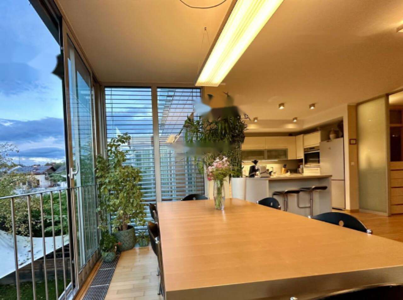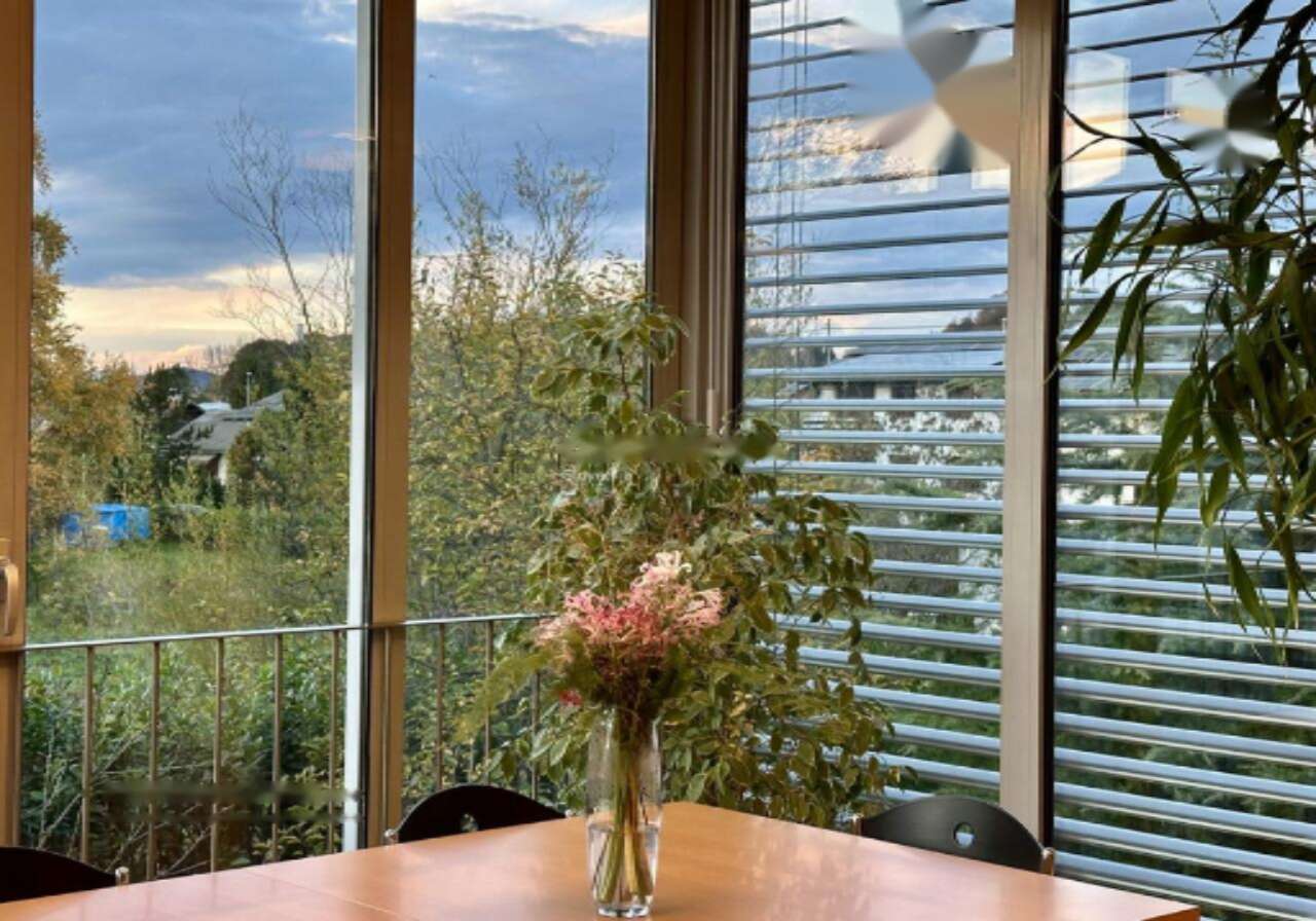 Благодаря северо-западной направленности и большим окнам, квартира залита естественным светом в течение всего дня и предоставляет потрясающие виды на зелёные окрестности. Столовая открывает вид на знаменитый Люблянский град .