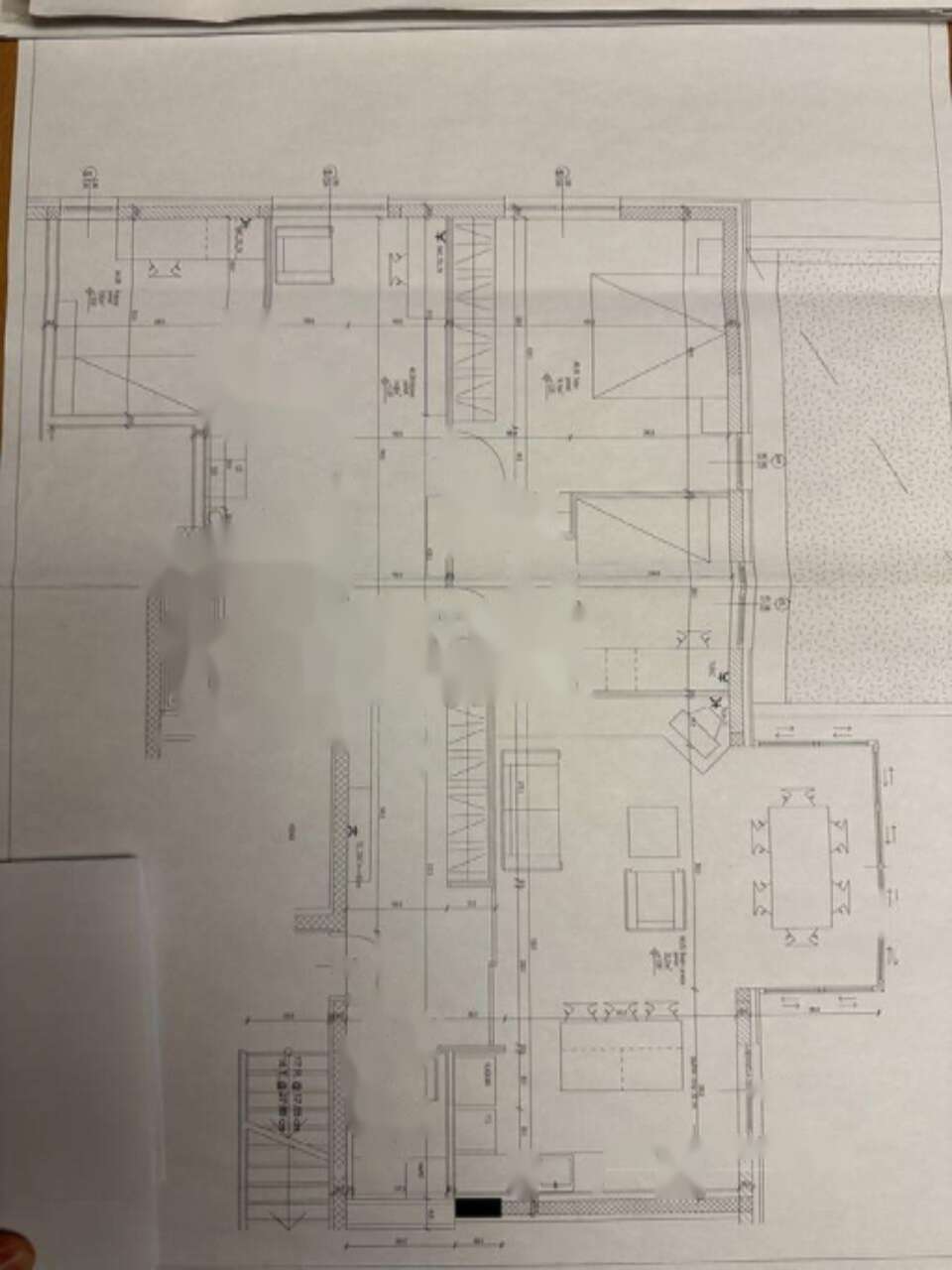 В квартире удобно разместились кухня, гостиная, столовая, отдельный туалет для гостей, четыре спальни, просторная ванная комната с ванной, двумя умывальниками и душем, а также хозяйственное помещение. Объект включает внешнюю закрытую гаражную постройку, парковочное место перед гаражом и кладовую с доступом через гараж.