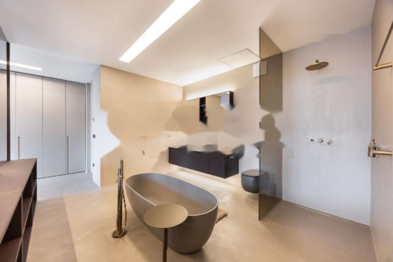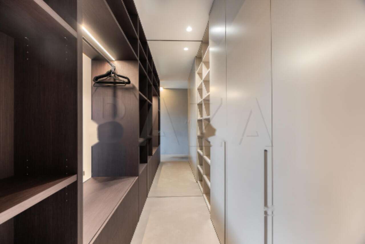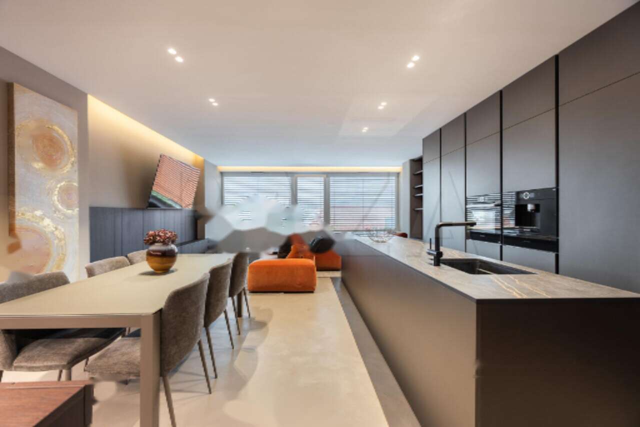 - Оборудование на кухне: встроенная техника, включая духовой шкаф, посудомоечную машину, большой холодильник с морозильной камерой, индукционную плиту с вытяжкой, кофемашину и винный шкаф