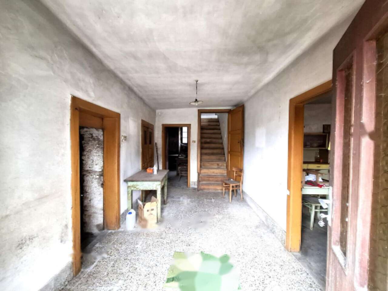 На первом этаже находятся прихожая с объединенной кухней и гостиной, ванная комната и подвал. Второй этаж включает три спальни и доступ к чердаку, который может стать дополнительным жилым пространством. Дом оборудован водопроводом и электричеством, имеется септик; доступ в деревне к интернету и оптическому кабелю.