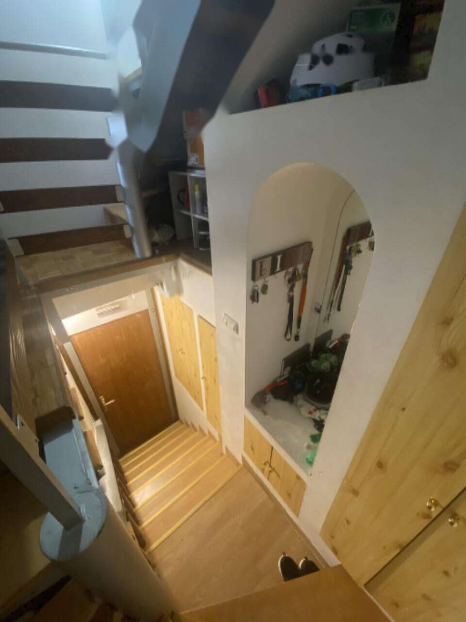 Жильё занимает два уровня: на одном расположены две спальни и ванная комната, а на другом — просторная гостиная, объединённая с кухней и столовой. Сквозь окна открывается захватывающий вид на площадь Тартини.