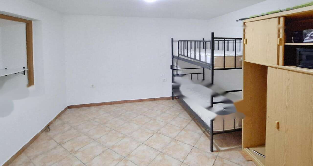 В первой части есть ванная комната, комната с двухъярусной кроватью, гостиная с камином и просторная столовая с отдельной кухней. Апартамент, имеющий собственный вход, включает в себя кухню, гостиную, ванную комнату, спальню и дополнительную комнату. При желании можно легко объединить обе части в единое пространство. Электричество подводится по отдельному счётчику, а водоснабжение общее для всего здания. На данный момент отсутствует официальный документ о разрешении на использование жилья.