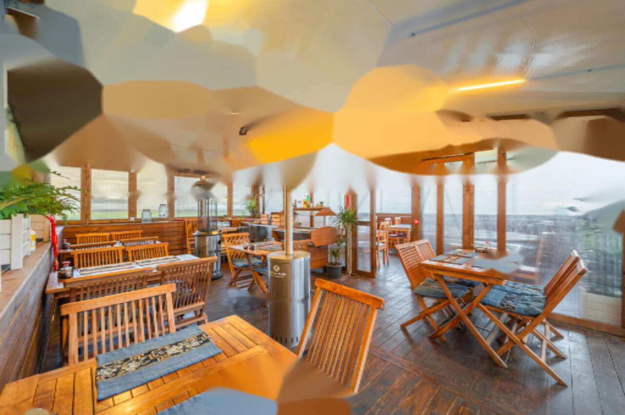 Внутри уже установлено все необходимое ресторанное оборудование, включая кухонное оборудование, бар, туалеты и обеденные зоны. Перед входом в ресторан расположен крытый павильон с арендуемой террасой, что позволяет обслуживать гостей на свежем воздухе. В подвале размещены помещения для подготовительных работ, склад и раздевалка для персонала, с удобным доступом для доставки через подземный паркинг.