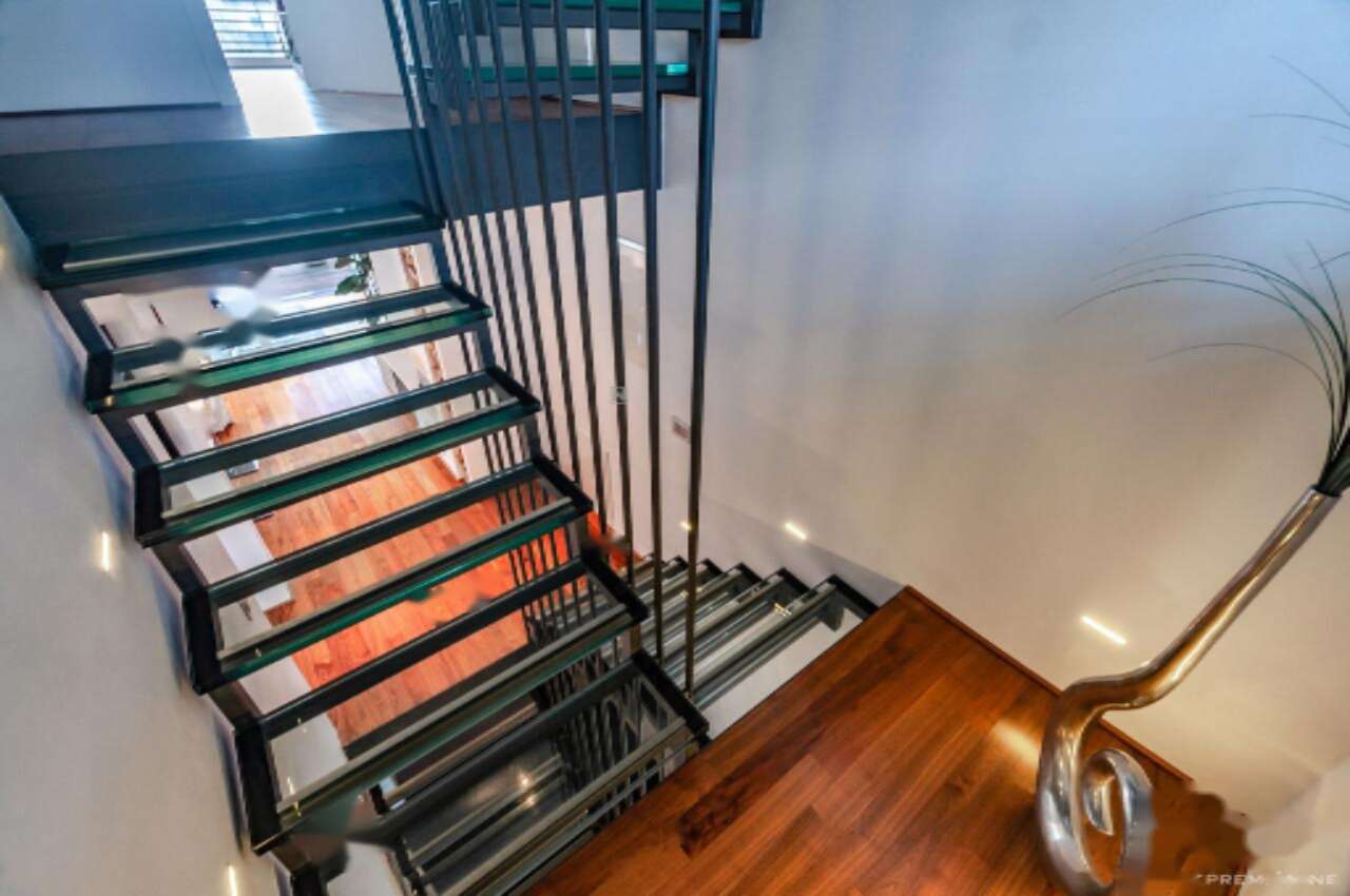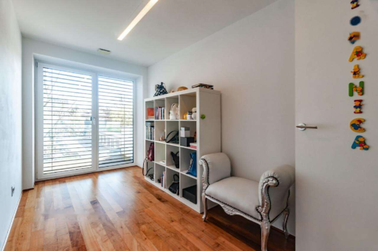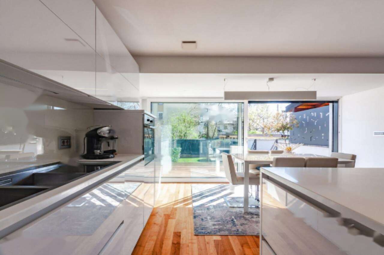 Кухня, расположенная на верхнем уровне, радует глаз стильным дизайном и оснащена первоклассной техникой: духовкой от Miele, посудомоечной машиной и двумя холодильниками от Liebherr. Из столовой открывается выход на просторную террасу (17,66 м²) и ухоженный сад около 50 м², создавая идеальные условия для отдыха на свежем воздухе. Балкон второго этажа (6,8 м²) предлагает уединение для утренних ритуалов с кофе или вечерней медитации.