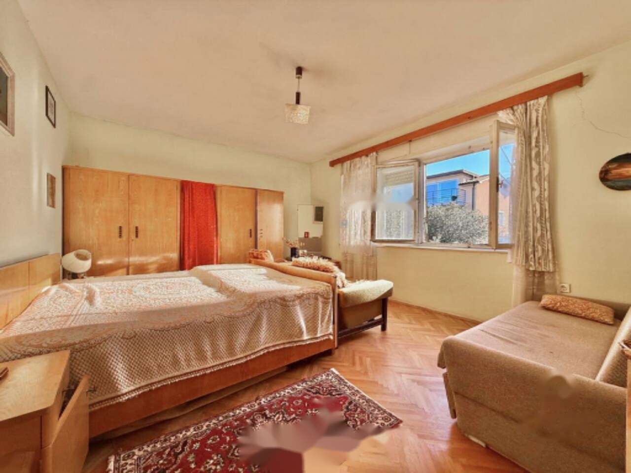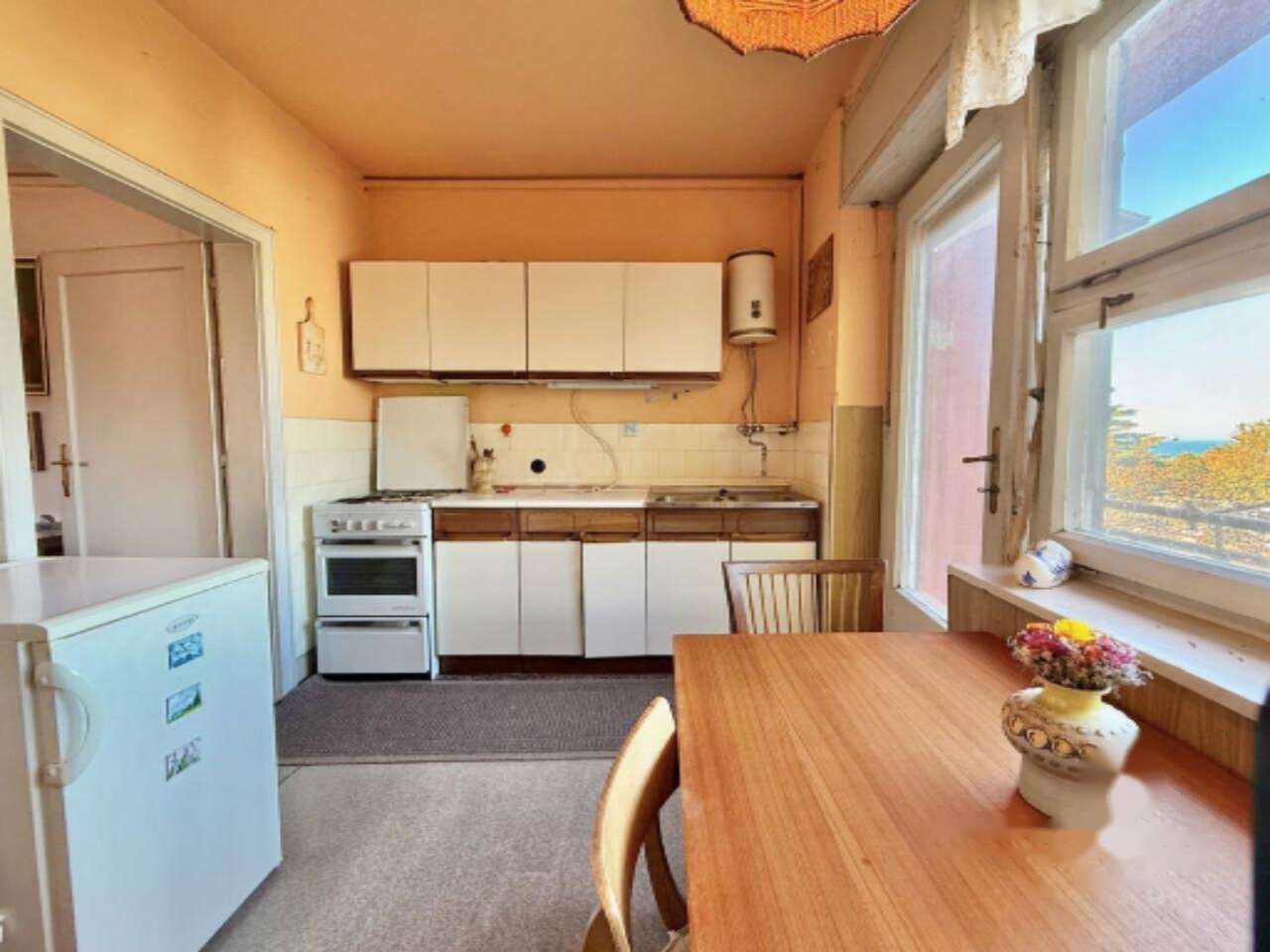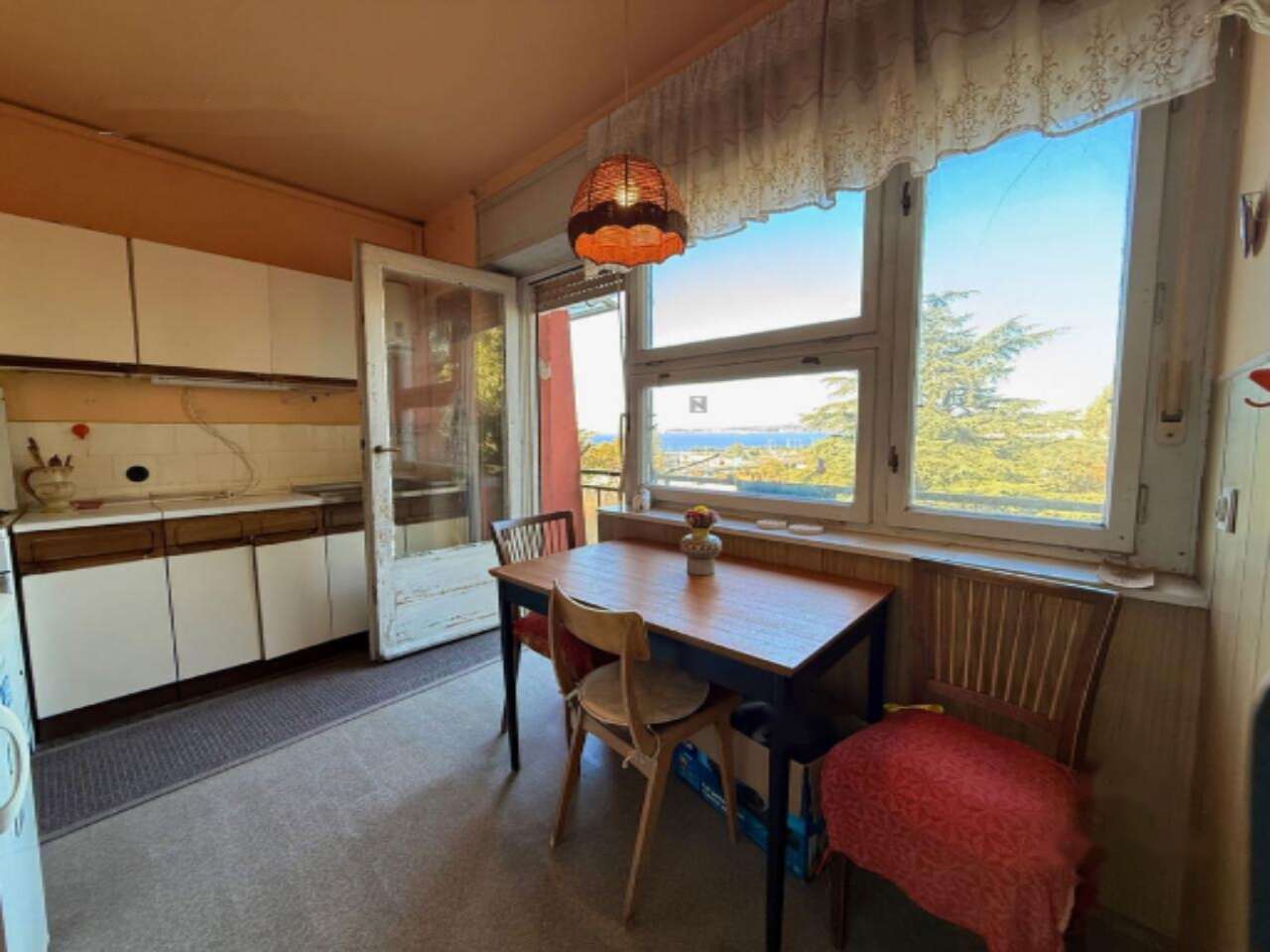 В квартире имеются гостиная, кухня с выходом на балкон и кладовка, просторная спальня, прихожая и ванная комната. Из окон открывается потрясающий вид на Коперский залив и зеленые улицы. Хотя требуется капитальный ремонт, включая обновление окон, кухни и ванной, это прекрасный шанс создать идеальное пространство для жизни.