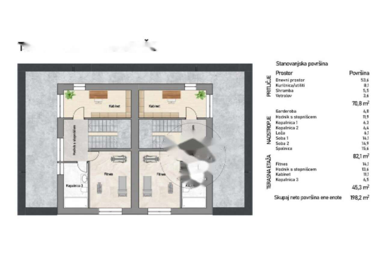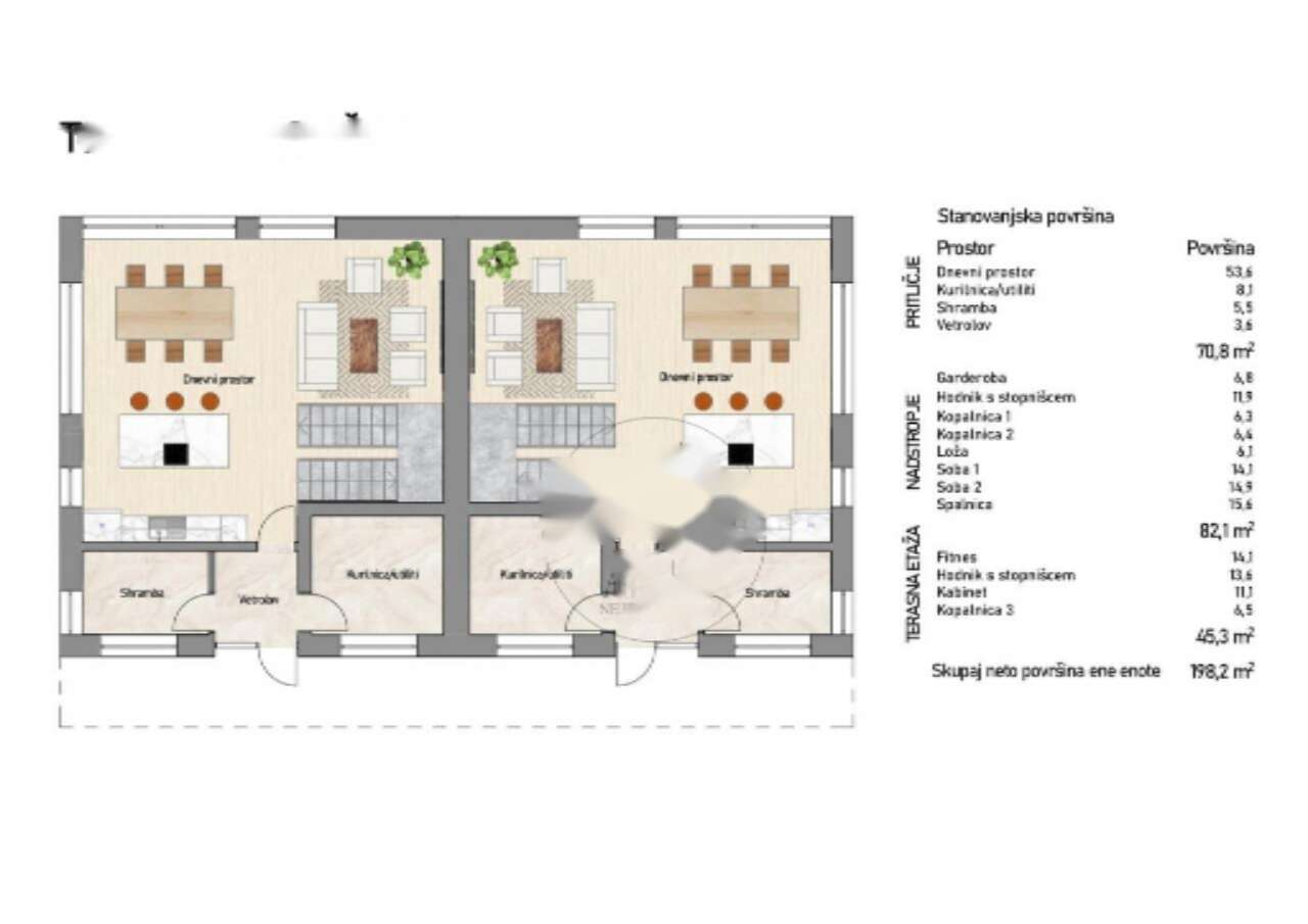 В районе Дравле представлен просторный двууровневый таунхаус с современной архитектурой, общей жилой площадью 198,2 м² и земельным участком 284,6 м². Этот дом, возведённый из высококачественных материалов, будет готов к заселению к концу 2025 года, предоставляя семейное уютное жилье.