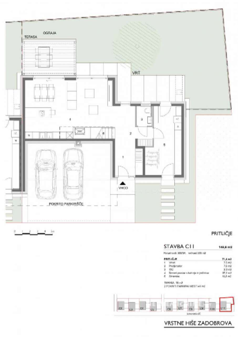 На продажу выставлен современный дом с террасой в районе Верхняя Задоброва, г. Любляна. Площадь дома составляет 148,58 м², а территория участка — 305 м². Строительство завершено на третьем этапе, и дом будет полностью готов до конца года. Дом имеет стратегическое расположение рядом с восточным объездом Любляны, что обеспечивает отличное транспортное сообщение, включая быстрый доступ к автостраде Задоброва. В пешей доступности имеются детский сад, школа, магазины и остановка общественного транспорта.