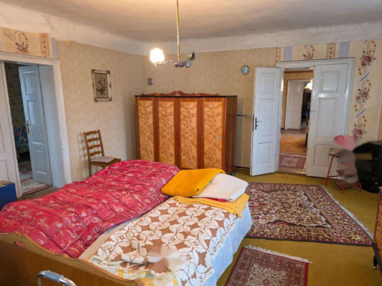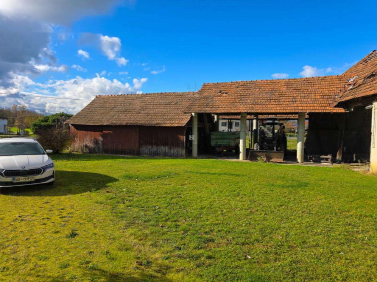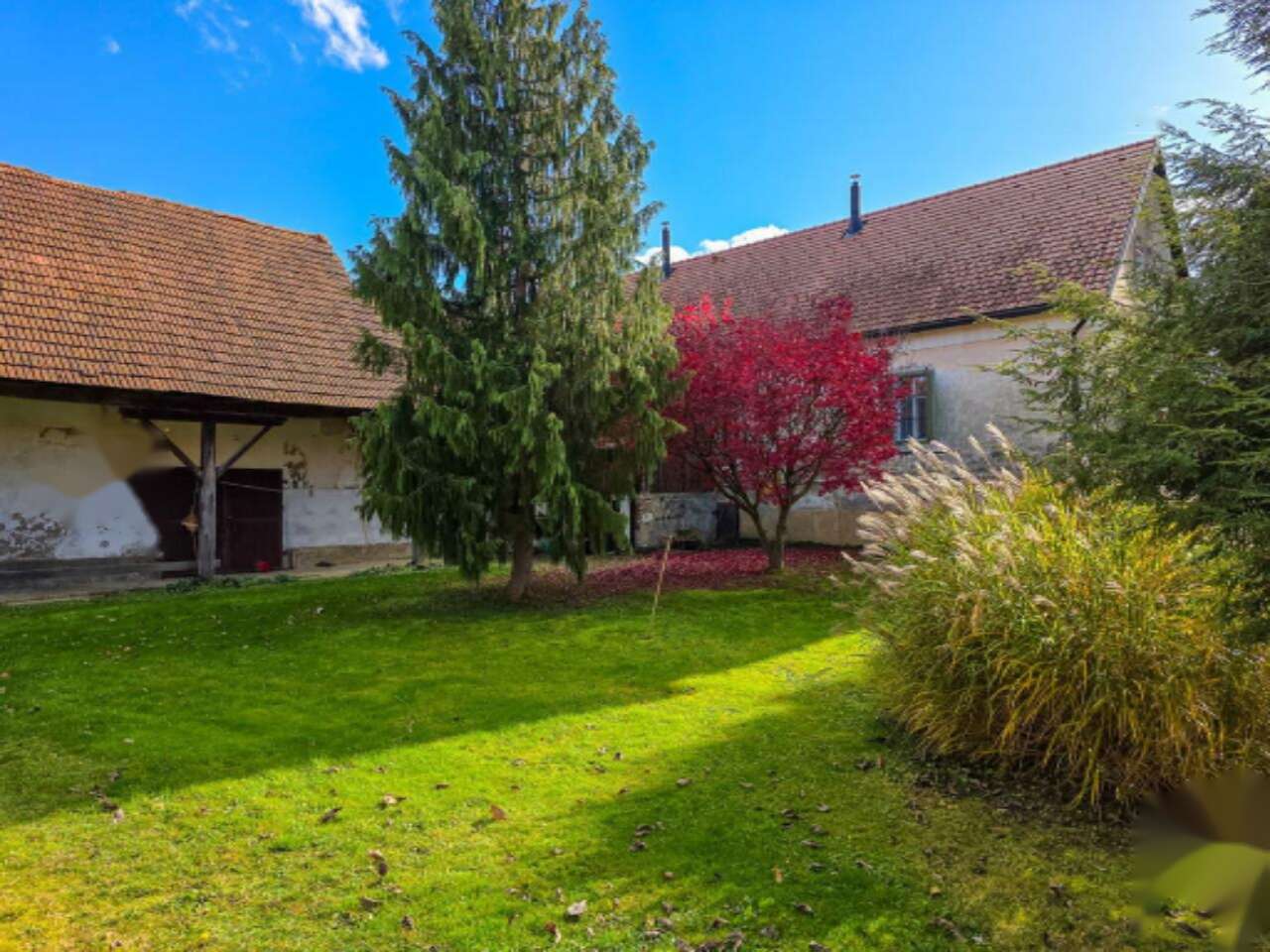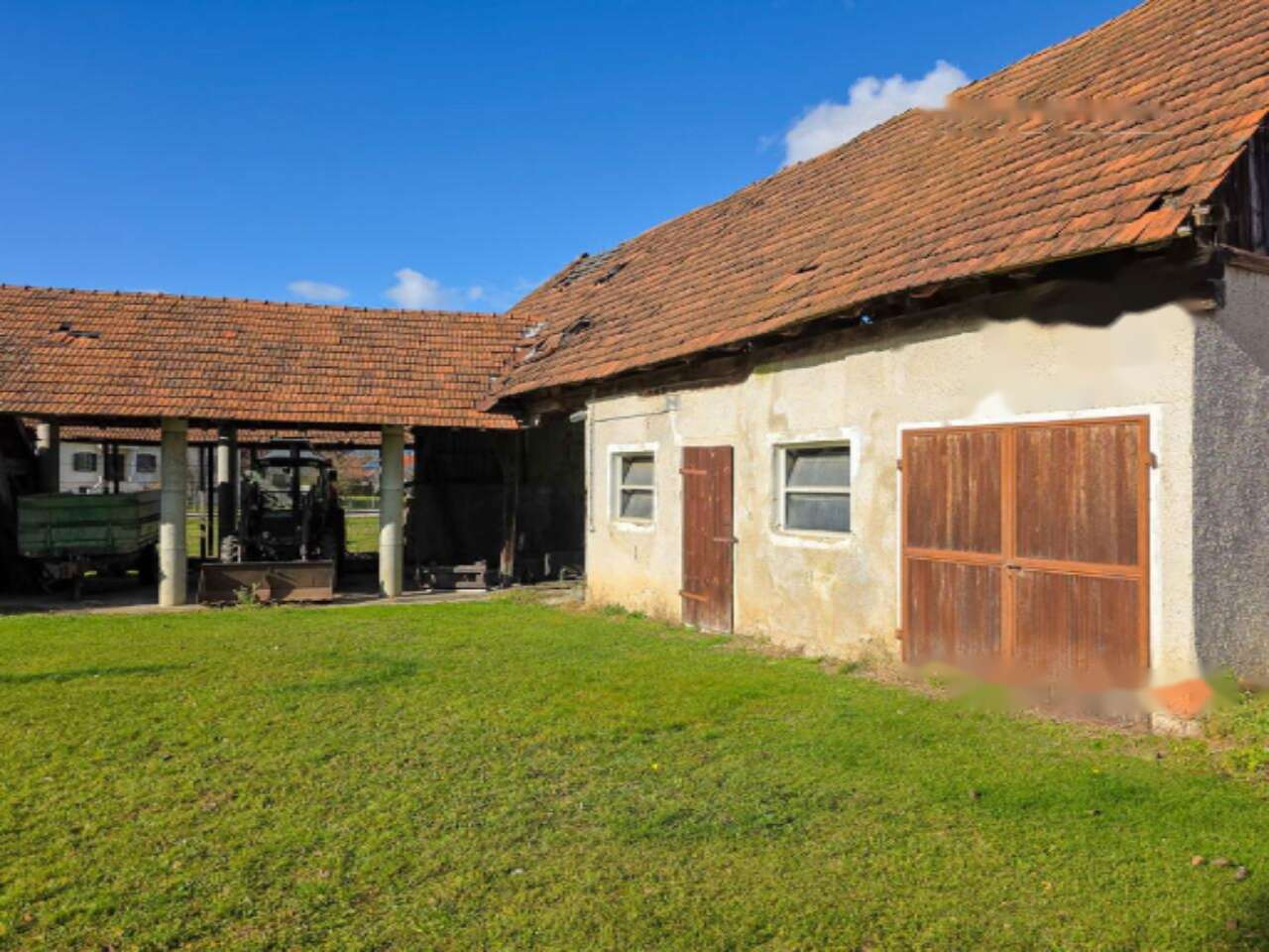 Жилая часть усадьбы выполнена в утонченном прелёшком стиле, характерном для зажиточных сельских хозяйств этого края и представляющем собой значительную архитектурную ценность. Внешний вид дома обновлен: установлены новая кровля и деревянные окна с ставнями. Внутри просторный холл, ванная, несколько комнат, кухня и санитарные помещения. Сохранившаяся атмосфера прежних времен добавляет особое очарование этой недвижимости. Дом полностью окатедраван.