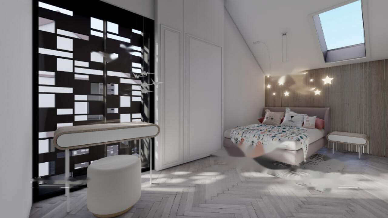 Жилая часть квартиры занимает 138,8 м² и дополняется обширным частным атриумом площадью 134 м², а также двумя собственными парковочными местами. Внимательно продуманы все аспекты: начиная с теплых полов и заканчивая эффективной отопительной системой с тепловым насосом и удобными подсобными помещениями. В квартире расположены три спальни, одна ванная и просторная гостиная, комфортная для всей семьи.