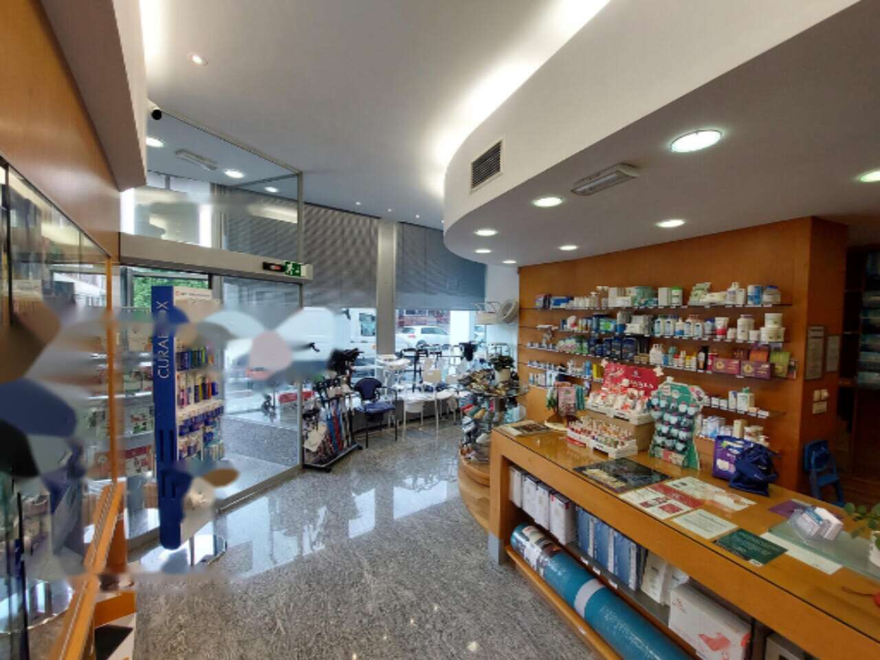 Архитектура здания включает выразительные витринные окна на первом этаже, обеспечивая отличную видимость и легкий доступ. Это идеально подходит для торговой деятельности или специализированного бизнеса, например, продажи медицинских товаров.