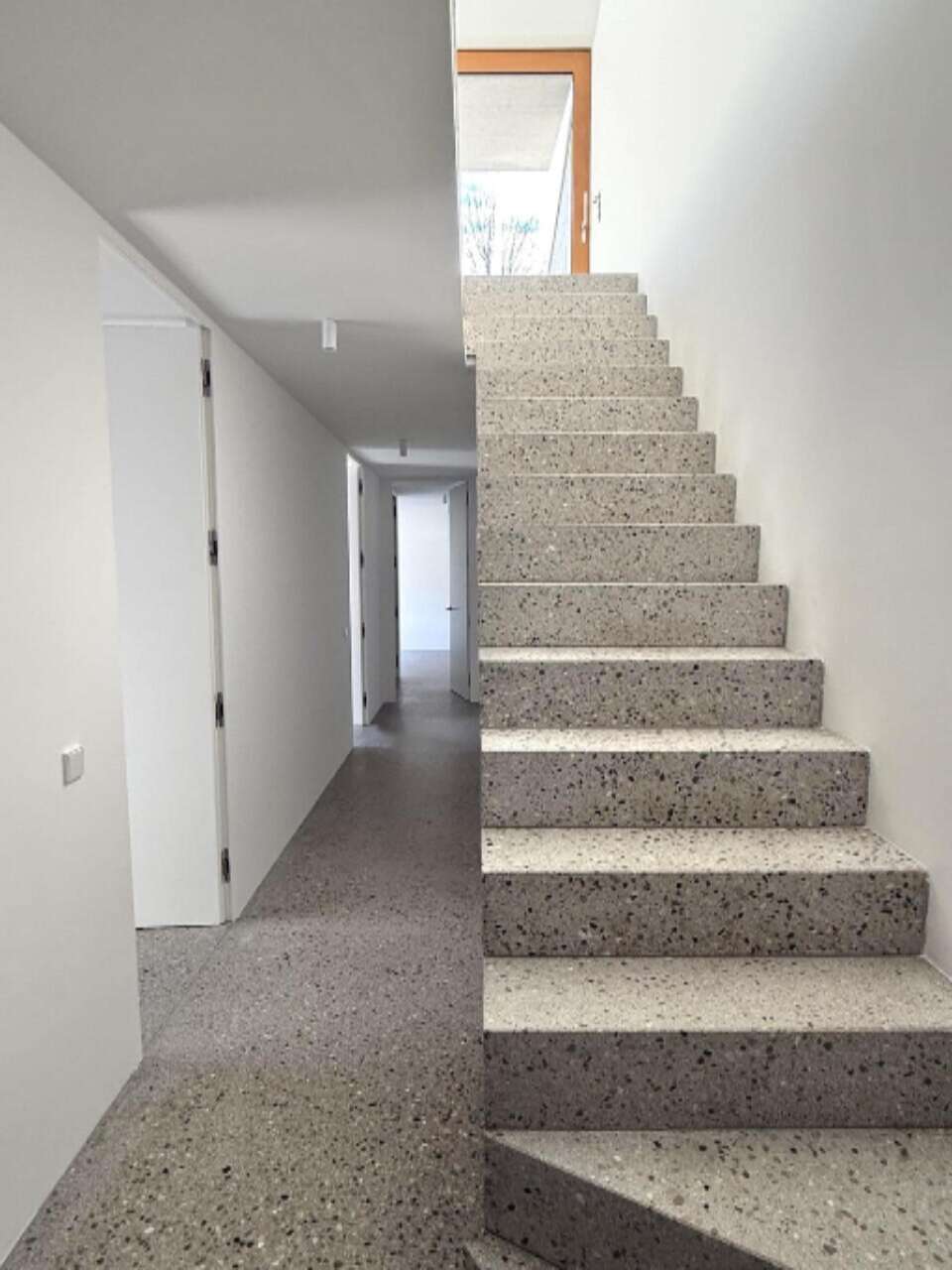 В интерьере установлены двери INLINE V260cm с невидимыми петлями и без видимых рам. Современные решения для освещения представлены ARCADIA Lightwear, включая светильники от Vertigo Bird и SIMES. Система домофона с функцией распознавания лиц, сантехника от Dorn Bracht и предварительно установленная вытяжка Bora подчеркивают высокий уровень данного жилья. Водные соединения расположены перед главным входом, кровля и водостоки выполнены из пескоструйной нержавеющей стали, а фасад — из декоративного бетона.