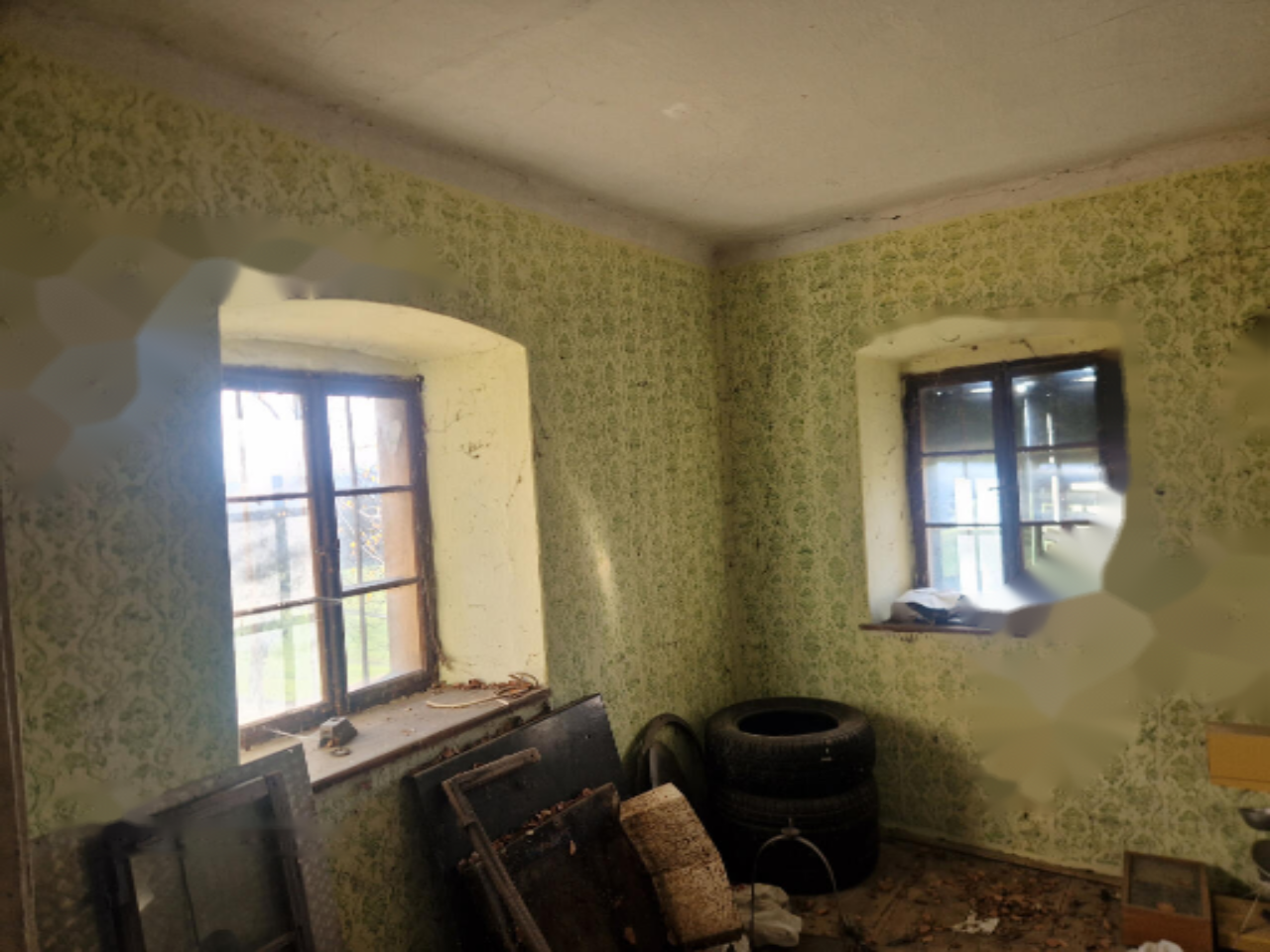 Объект выделяется своей оригинальной планировкой — в полуцоколе имеется изысканный арочный винный погреб площадью 30 м². Над цоколем расположена основная жилая зона, состоящая из трёх комнат, которые сейчас используются как кладовые. Подвальное помещение нуждается в ремонте, а чердак остаётся неизведанным. На территории вы найдёте скромную кирпичную постройку для свиней, а старое крестьянское подворье, вместе с хозяйственными постройками, требует обновления или капитального ремонта.