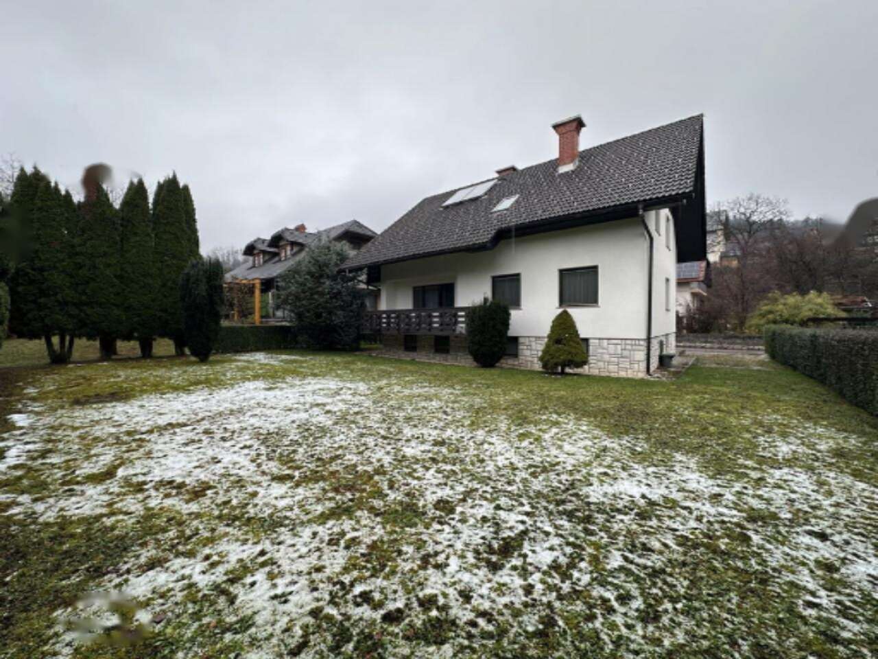 На продажу выставляется доля в одноэтажном доме, который уютно расположился в живописной и спокойной деревушке Засип, неподалеку от Бледа. Построенный в 1991 году, этот дом занимает площадь 283,9 м² и находится на земельном участке площадью 594 м². Для отопления используется система на основе теплового насоса.