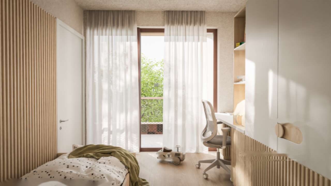 Жилые зоны квартиры наполнены светом и ощущением простора, а наличие хотя бы одного внешнего пространства позволяет наслаждаться видом на окрестности и горы. Зелень, интегрированная в районе, улучшает качество воздуха и помогает поддерживать комфортную температуру.