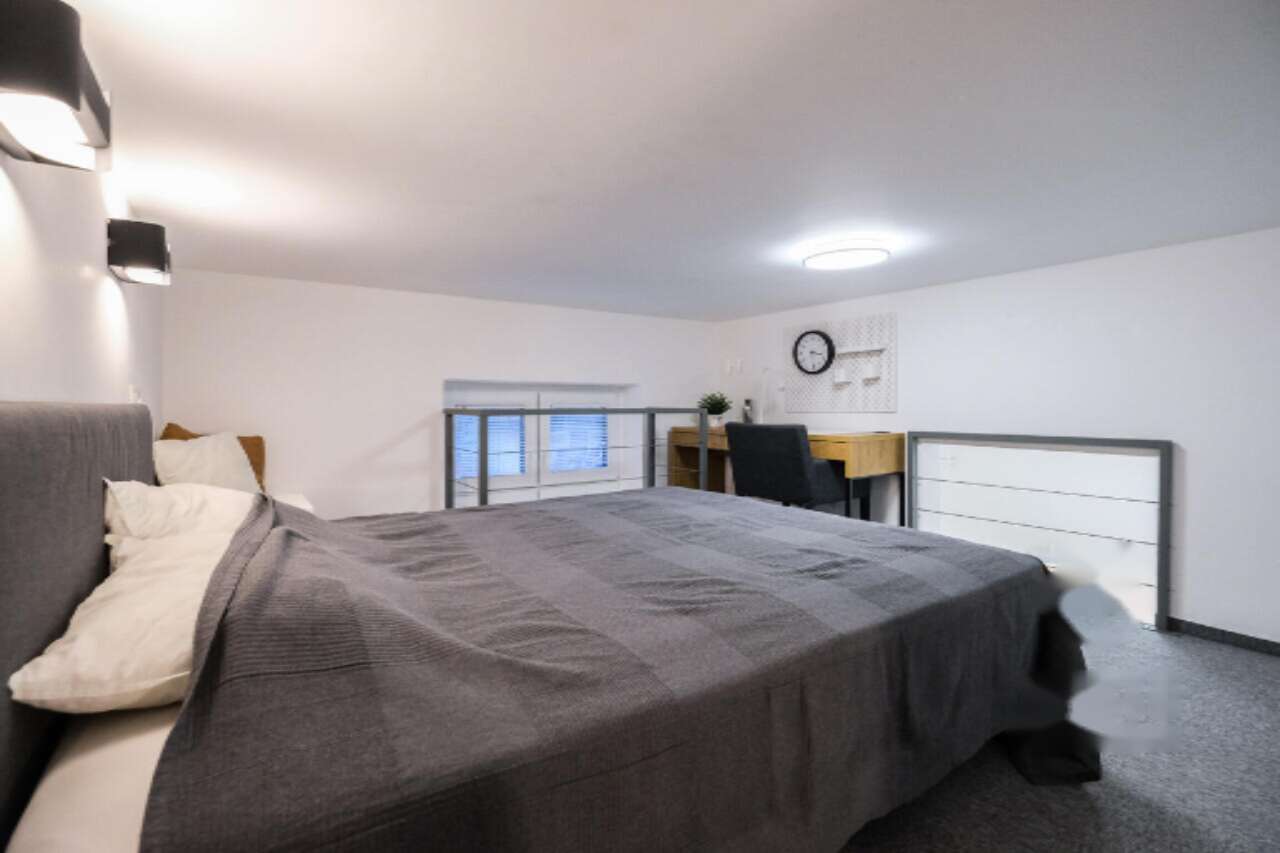 К числу основных достоинств этой недвижимости относится совершенно новая и современная обстановка, которая остается будущим владельцам. Обеденная зона, совмещенная с гостиной и кухней, занимает 30 м², а на галерее расположена спальня с рабочим пространством. В ванной комнате предусмотрены душевая кабина и туалет. Также жильцам доступны общая велопарковка.