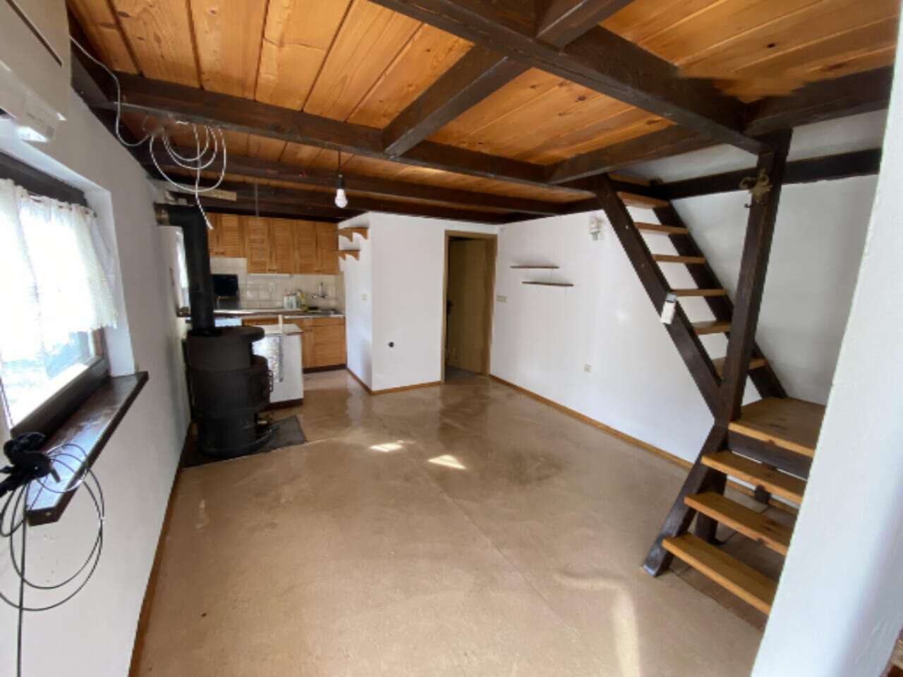 Внутри дома размещены жилые помещения на двух уровнях, включая подвал, что открывает широчайшие возможности для различного использования. В распоряжении жителей одна спальня и ванная комната. Балкон и терраса прекрасно подходят для отдыха на воздухе. Наличие сада и места для парковки значительно повышает уровень комфорта.