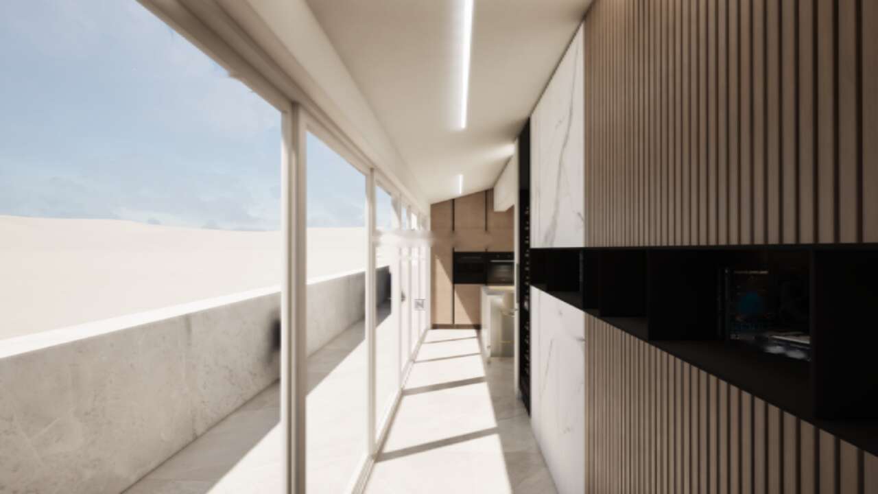 Внутреннее пространство квартиры включает прихожую, просторную и светлую гостиную, кухню с обеденной зоной, две спальни, две ванные комнаты, а также небольшую кладовую. Два балкона общей площадью 29,4 м² добавляют очарования: один из них выходит на юг с великолепным видом на море, а другой обращен на север к зелени. Дополнительным плюсом является эксклюзивное право на использование южного участка земли площадью 100 м².