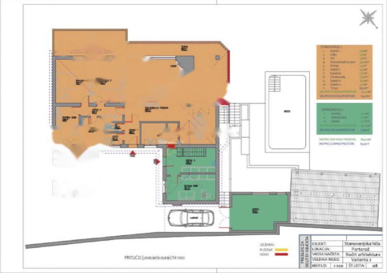 Представляем вашему вниманию изысканную виллу, расположенную в одном из самых респектабельных уголков Порторожа. Этот просторный дом в один этаж, воздвигнутый в 1975 году и обновлённый в 1998 году, занимает просторные 383,2 м² на участке площадью 701 м².