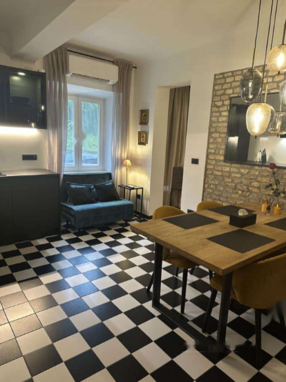 Эти апартаменты располагаются на первом этаже исторического здания и занимают площадь 58,6 м². Южно-западная ориентация способствует обильному проникновению естественного света в течение дня. Этот вариант подойдет как для небольшой семьи, так и для деловых людей или пожилых пар, которые ценят комфорт.