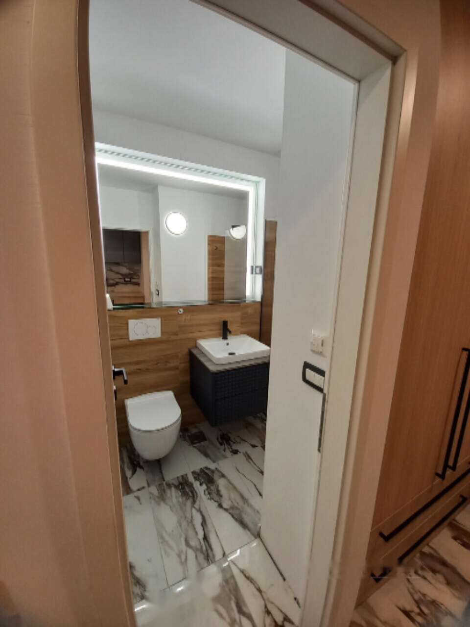 В 2023 году апартаменты были полностью обновлены и сейчас оборудованы всеми современными удобствами. Пространство квартиры организовано рационально: в наличии прихожая с встроенными шкафами, ванная комната, кухня, совмещённая с обеденной и спальной зонами, где установлен удобный диван-кровать. Для велосипедов предусмотрено место в специально оборудованном хранилище, а для других вещей — помещение в подвале.