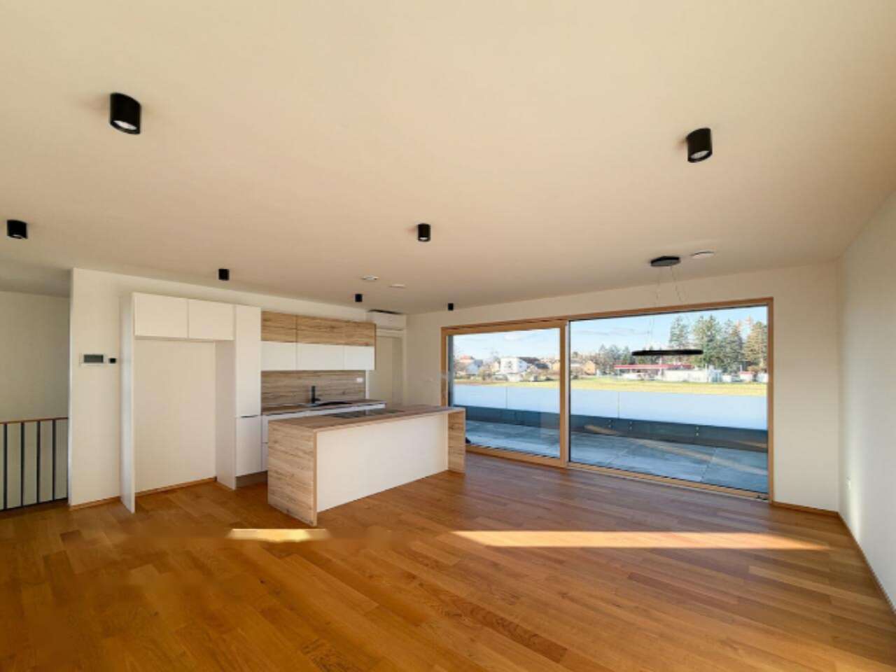 Вашему вниманию предлагается четырехкомнатная квартира в уникальной низкоэнергетической новостройке 2023 года постройки, расположенной в уютном и охраняемом районе Любляна Поле. Элегантная квартира площадью 147,7 м² размещается на трех уровнях двухквартирного дома и еще ни разу не использовалась. Вы получите ее с мебелью, выполненной по индивидуальному заказу. Удобство и продуманность интерьера делают жилье идеальным для молодых пар, семей с детьми, пожилых людей или как выгодное капиталовложение.
