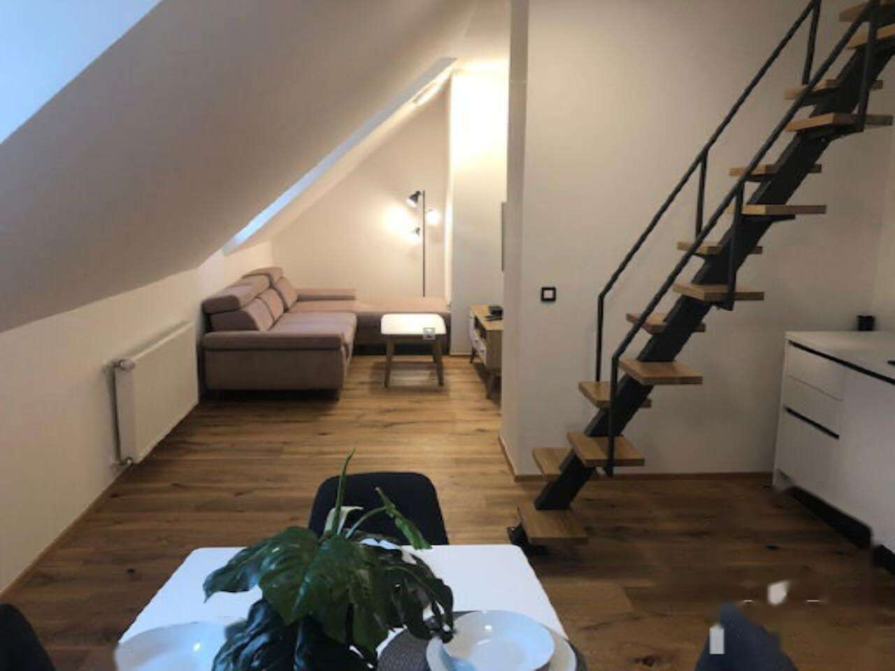 - Современный трехкомнатный дуплекс на двух уровнях.