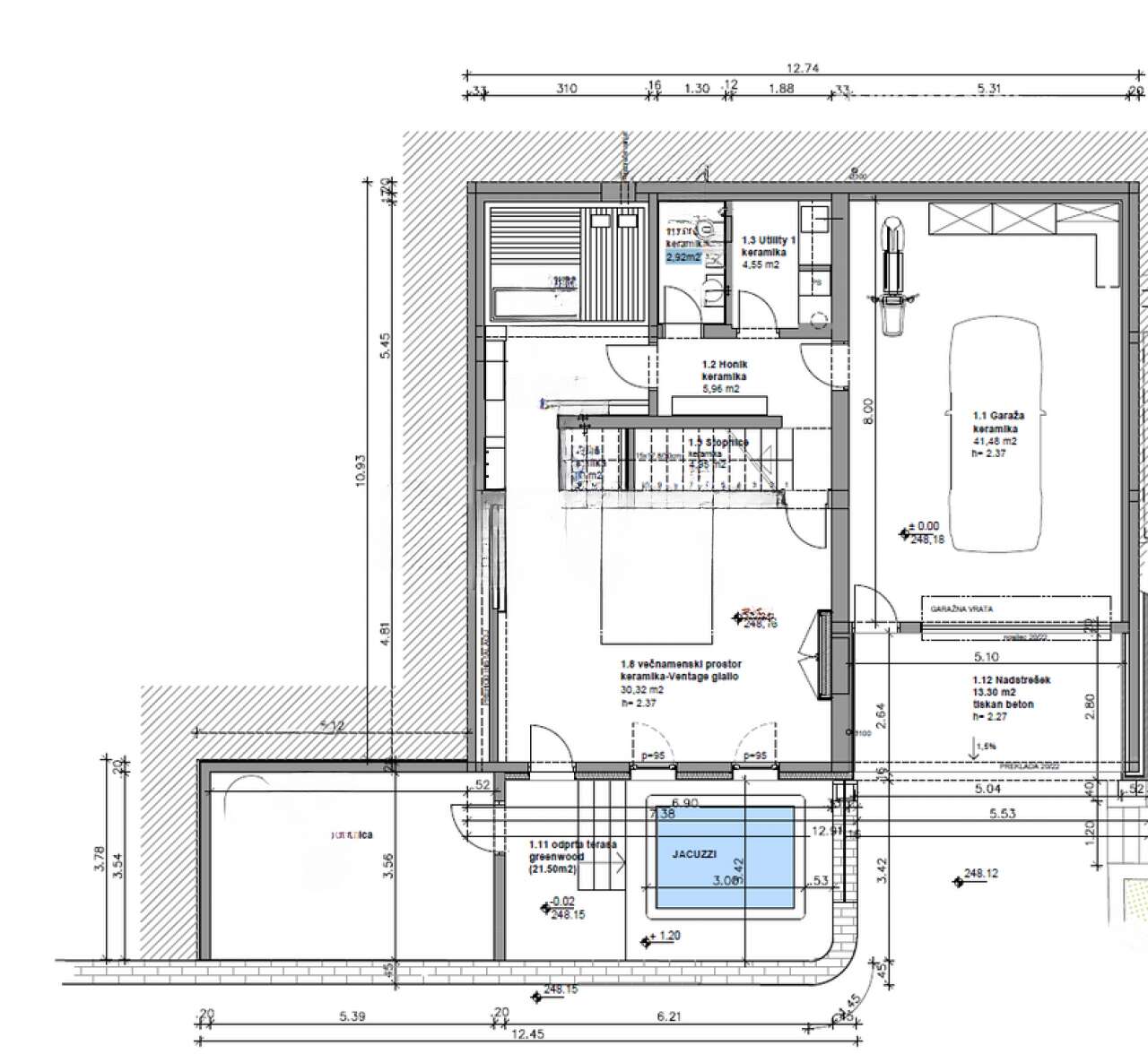 - На первом этаже: универсальная комната (тренажерный зал или дополнительная спальня) с выходом на террасу с джакузи, зона сауны и ванны, прачечная, гараж и технические помещения.