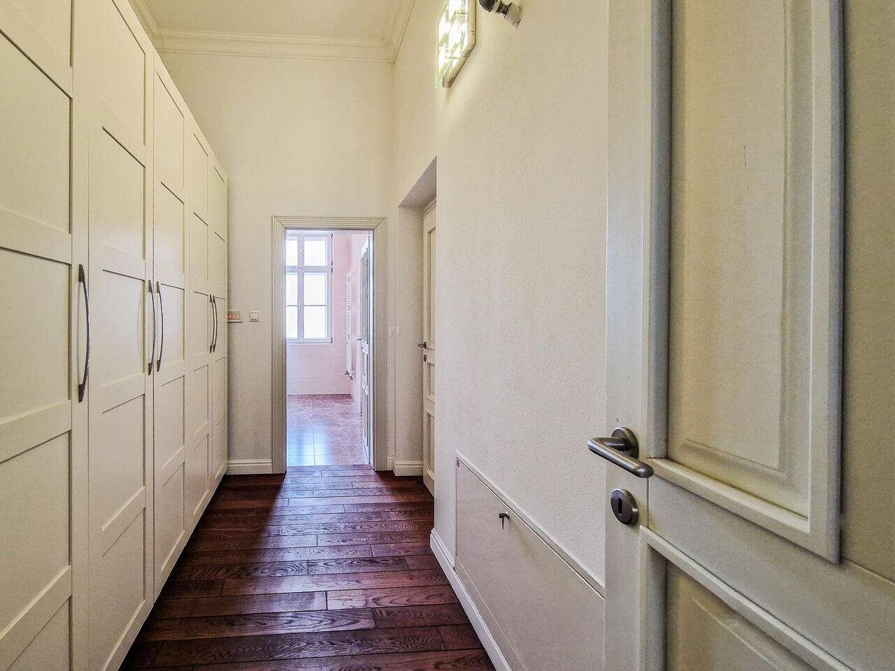 Просторная трехкомнатная квартира расположена в центральной части Любляны на Римской улице. Ее разместили на высоком первом этаже (из пяти) ухоженного здания, построенного в 1897 году. Благодаря значительной площади и уникальной планировке, жилье можно легко преобразовать в многокомнатное, что делает его весьма привлекательным для семейных пар и инвесторов.