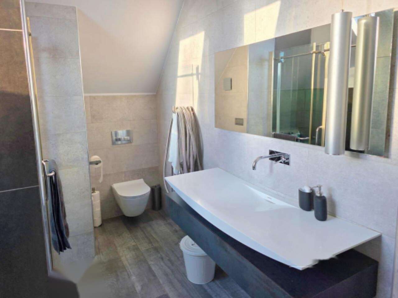 - Обновлённая в 2015 году главная ванная комната с системой тёплого пола
