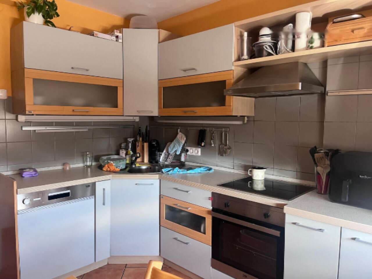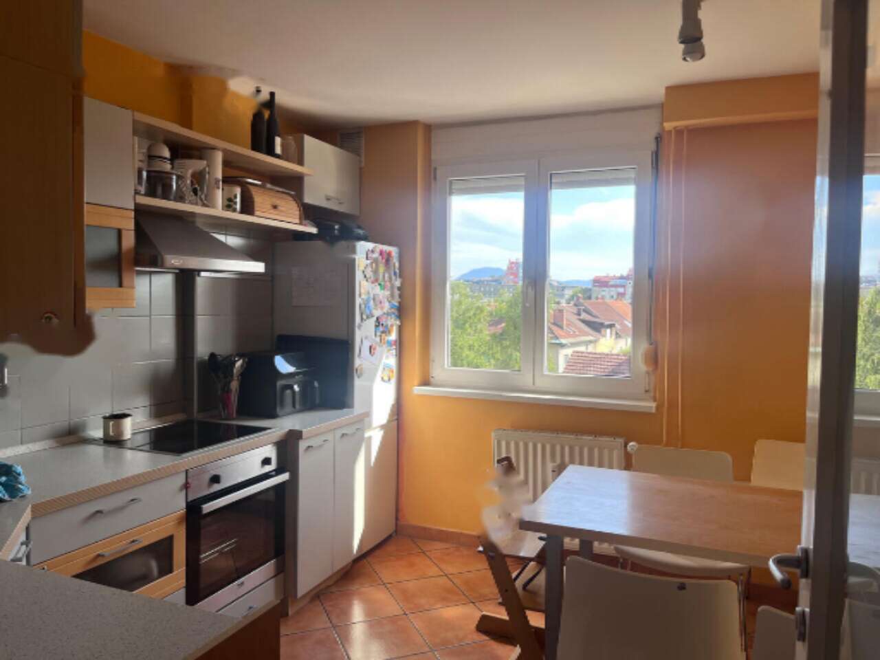 • Кухня, обставленная всей необходимой техникой, включая холодильник, посудомоечную машину и плиту, и предоставляющая обеденный стол, рассчитанный на 4-6 персон. Из окна кухни виден Люблянский град