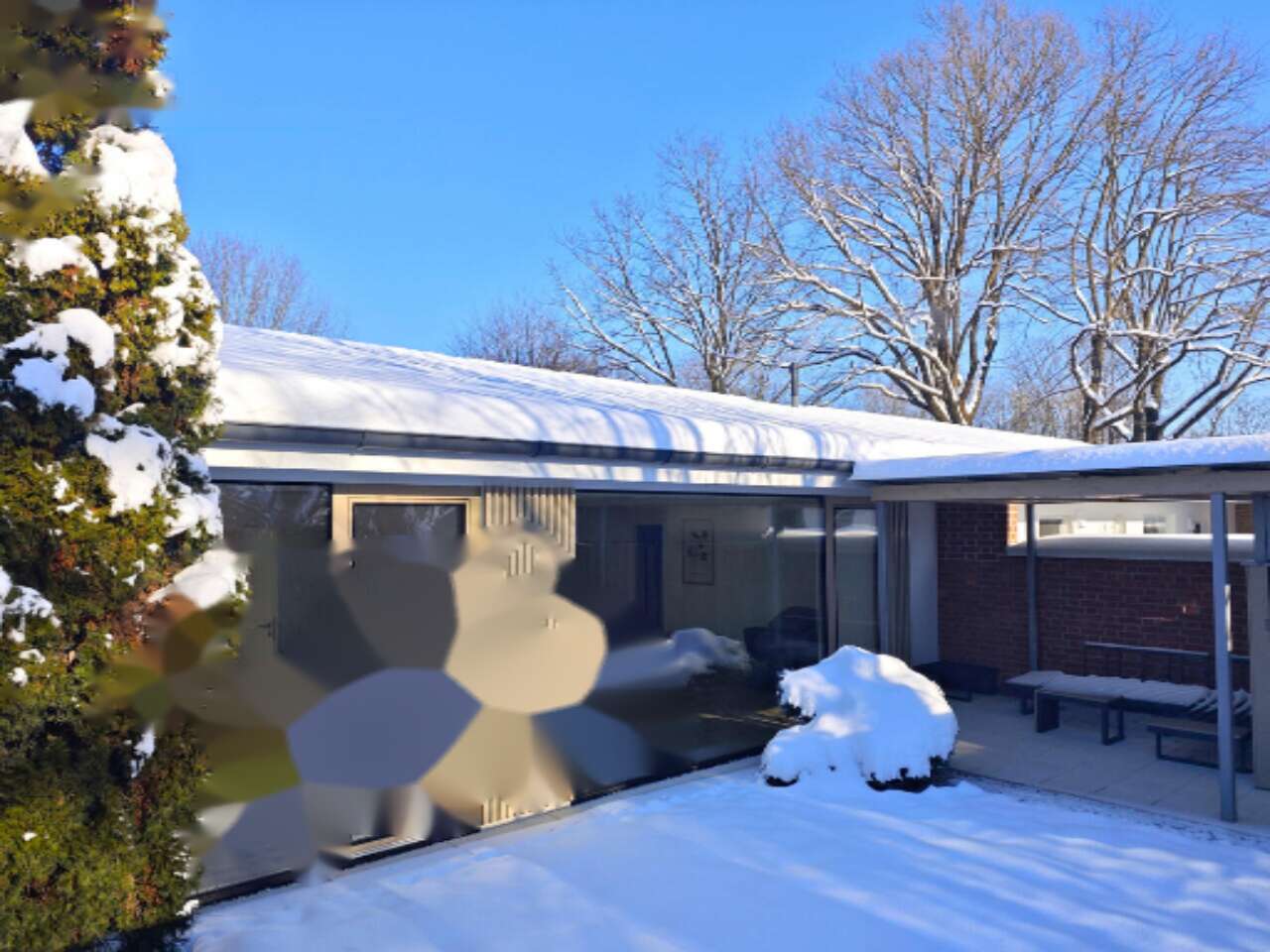 На юге дома расположена крытая стеклянная терраса площадью 19 м², идеально подходящая для летней кухни и зоны отдыха. Ухоженный садовой домик отлично подходит для хранения велосипедов и спортивного оборудования. Открытое пространство вокруг дома усиливает атмосферу единения с природой и умиротворённости.