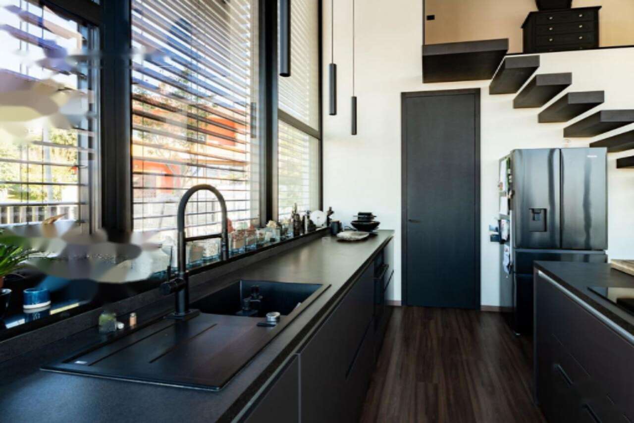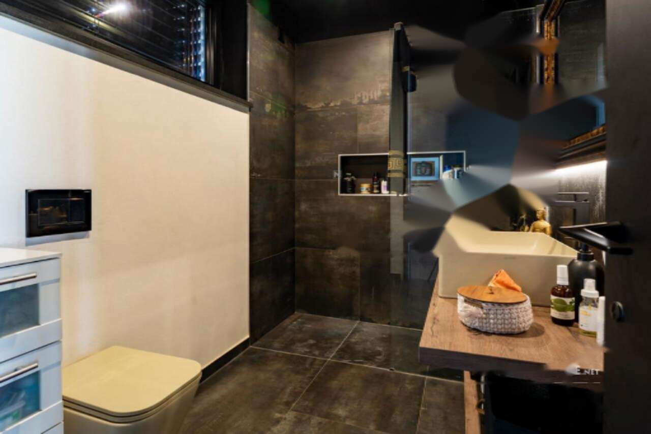 На первом этаже находится уютная трехкомнатная квартира площадью около 70 м², из которой можно выйти на террасу, оборудованную джакузи и садовой мебелью, с выходом в зеленую зону или атрий. Дополниет этот уровень отдельный студийный блок площадью 47 м², который прекрасно подходит для приема гостей или сдачи в аренду. На нижнем уровне предусмотрено удобное парковочное место для четырех автомобилей.