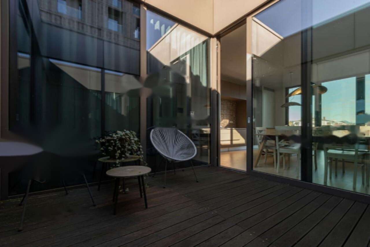 Эффективно организованное пространство включает в себя гостиную с обеденной зоной и кухню, спальню, кабинет, а также ванную комнату с туалетом. Удобство проживания дополняет эксклюзивная внутренняя терраса площадью 10,8 м² и вместительное помещение для хранения размером 6,7 м². В стоимость входят два частных места на подземной парковке для вашего комфорта.