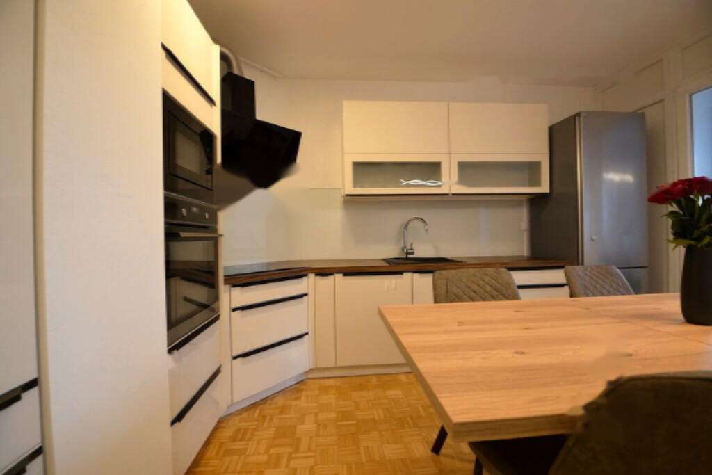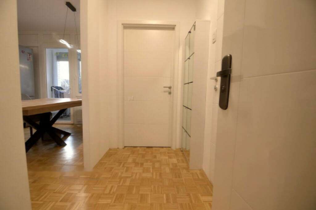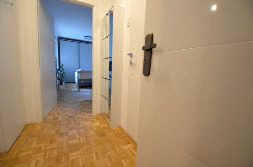 Предлагается на продажу полностью обновленная однокомнатная квартира с балконом, расположенная на третьем этаже в двенадцатиэтажном жилом доме в районе Нове Фужине, Любляна. Здание построено в 1985 году, а капитальный ремонт помещения проведен в 2022 году. Общая площадь квартиры составляет 44,6 м², из которых 38,4 м² приходятся на жилую зону.