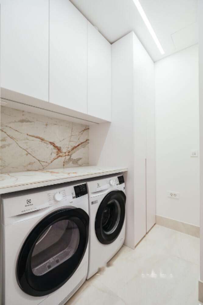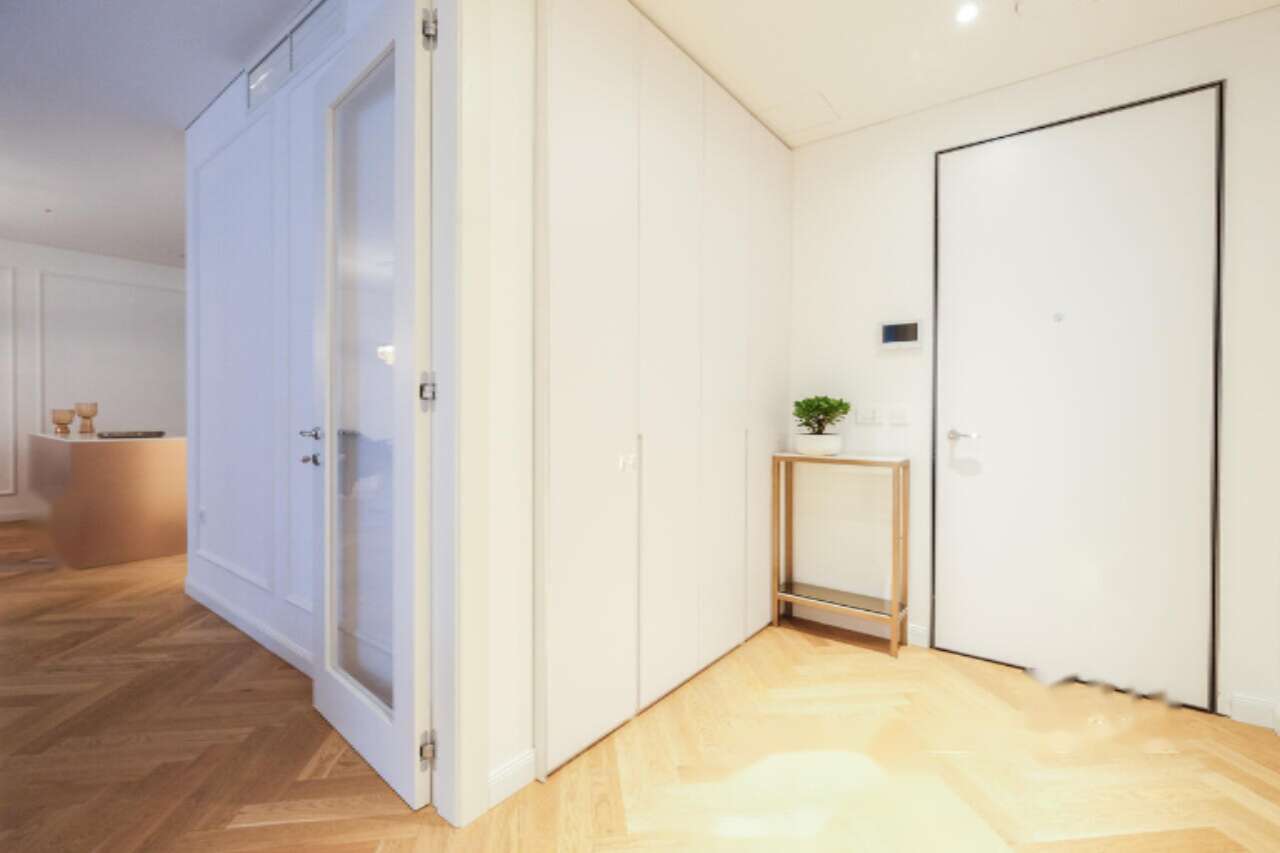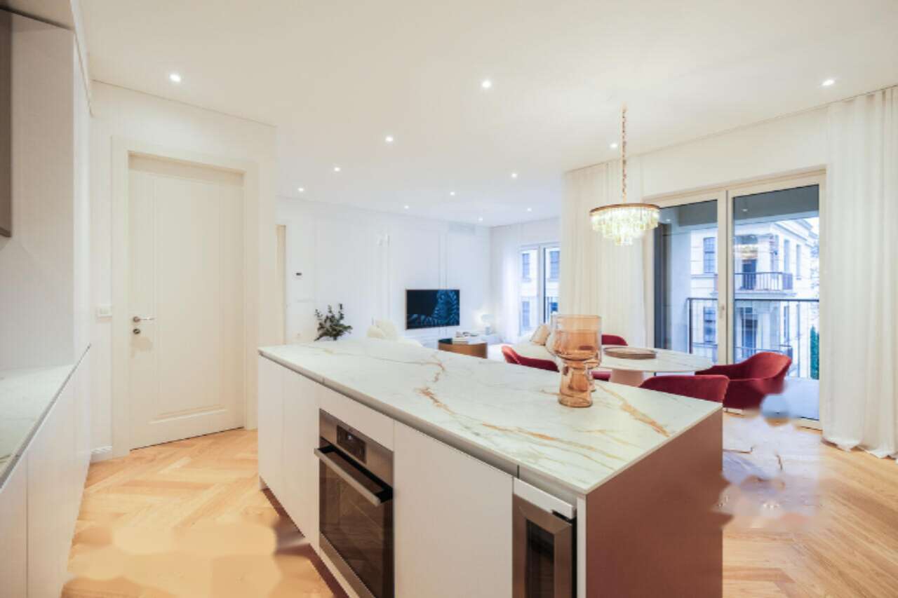 В квартире есть приемная, светлая гостиная, выходящая на балкон, современная кухня с обеденной зоной, уютная спальня, практичная вспомогательная комната, ванная с душем и отдельный санузел. Кухонная зона оснащена высококачественными приборами, среди которых винный шкаф, холодильник, посудомоечная машина, духовка и инновационная индукционная панель, встроенная в кухонный остров. Балкон, расположенный на юго-западе, открывает великолепный вид на город и окружающий парк .
