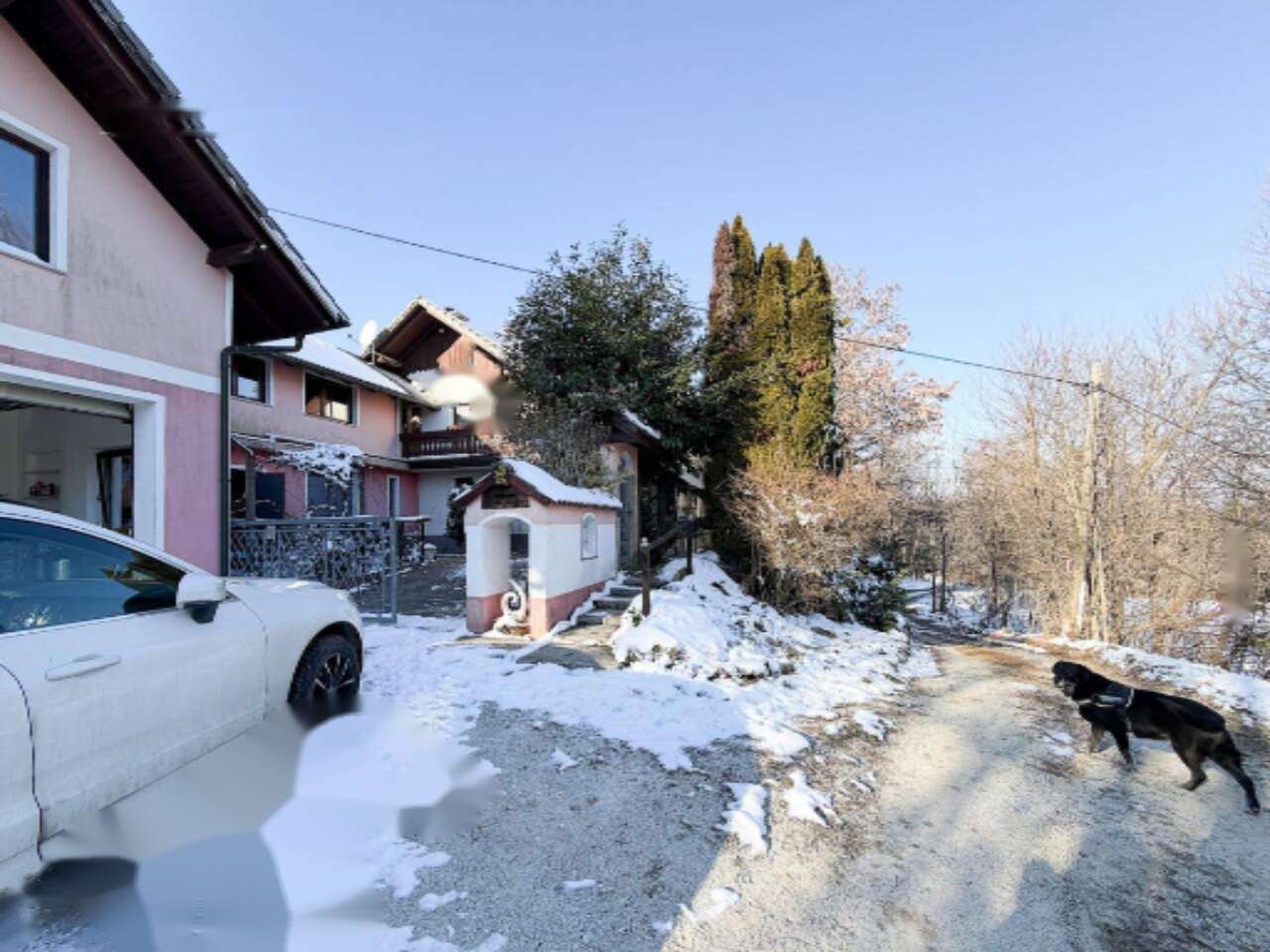 Основные преимущества включают просторную двойную гаражную зону и большой земельный участок площадью 3.177 м². Участок разделен на строительные и зеленые площади с ухоженными садами, а также фруктовыми деревьями. Дом привлекает инвесторов благодаря возможности разделения на два независимых жилых пространства, подходящих для двух семей.