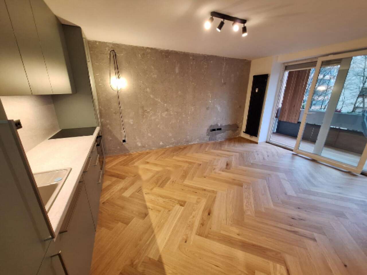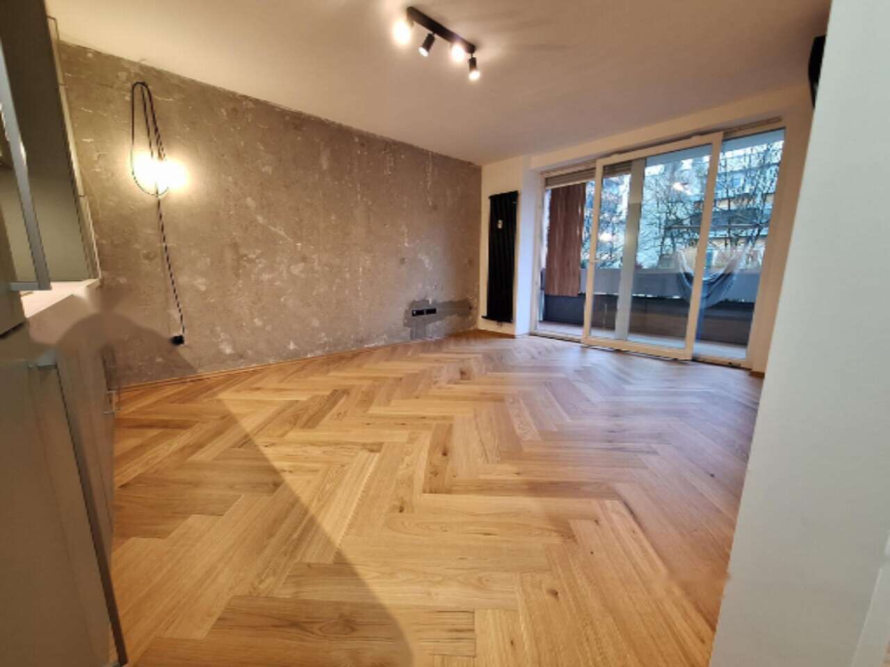 - На полу квартиры уложен высококачественный дубовый паркет "ёлочка".