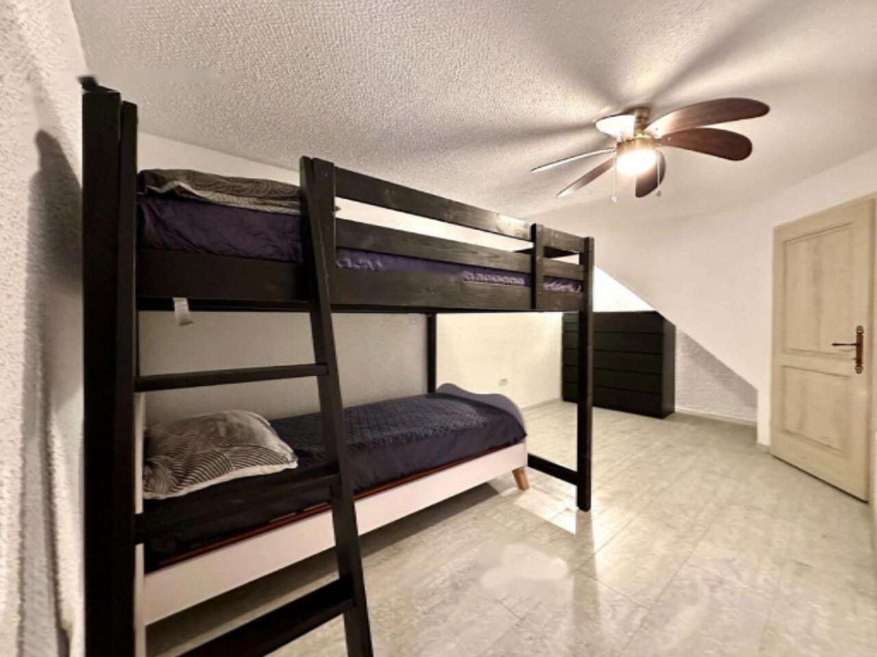 На первом этаже располагаются хозяйственная комната, ванная, спальня, кладовая и внутренние лестницы. Второй этаж предлагает две вместительные спальни, а третий укрывает кухню, сделанную вручную из натурального дерева. Висячая терраса на полуэтаже — отличное место для отдыха или встреч с друзьями. Светлая гостиная на мансарде соединяется с полуэтажом.