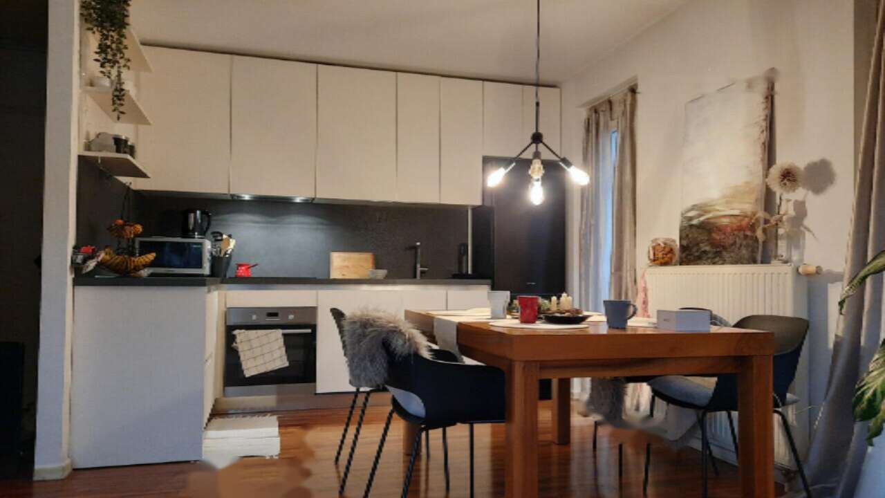 Благодаря центральному расположению, квартира обладает двумя парковочными местами на механической платформе, что является значительным плюсом. Внутреннее пространство включает прихожую, обновленную гостиную с кухней, оборудованной новейшей техникой Bosch, спальню, кабинет и ванную комнату.
