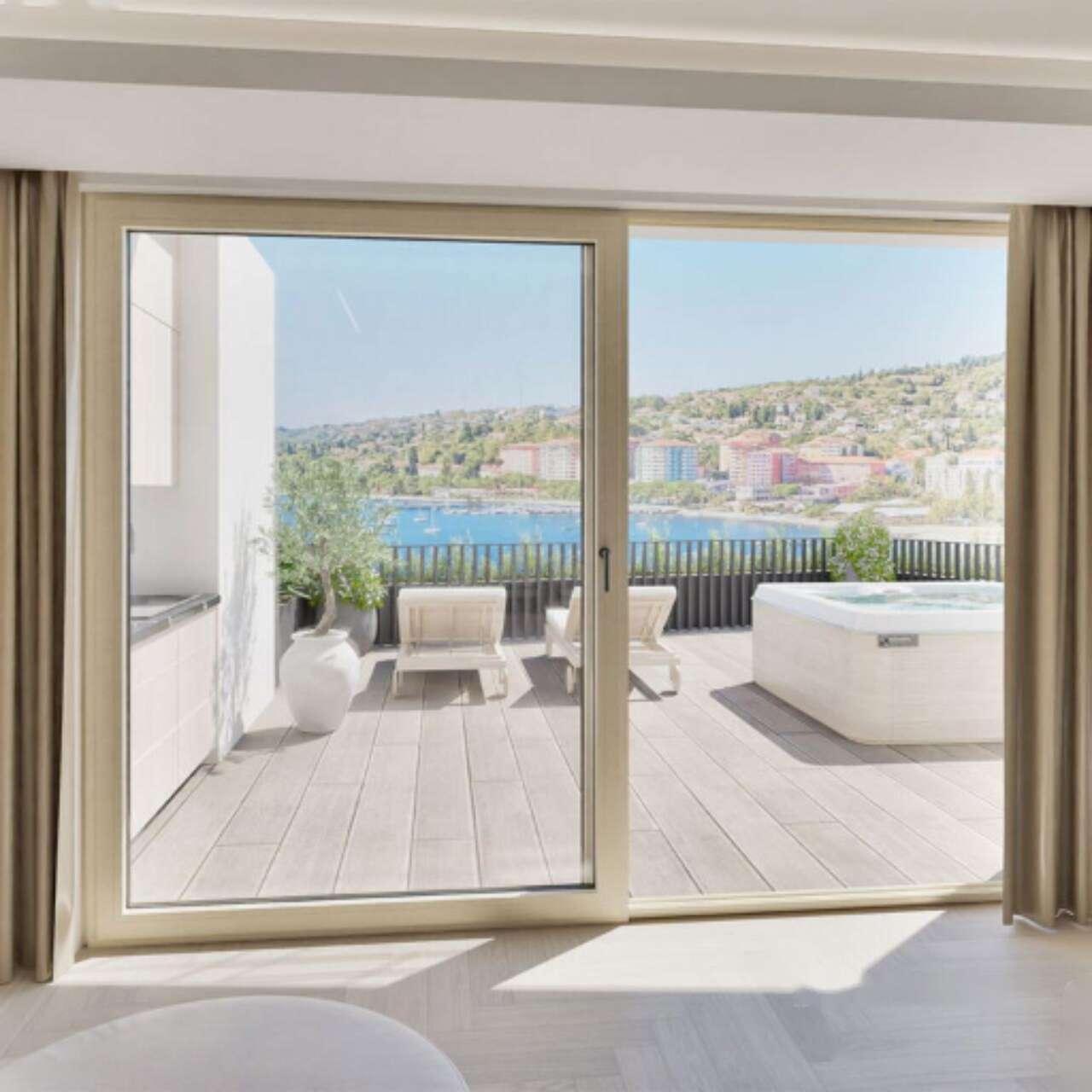 Роскошный четырёхкомнатный апартамент разместился в уникальной резиденции «Вирджиния» в Портороже, расположенной в престижном районе у самого берега моря. На первом уровне этого современного бутикового здания находятся лишь семь уникальных апартаментов, в которых гармонично сочетаются шик, высокое качество строительных материалов и непосредственная близость к знаменитому пляжу этого курорта.